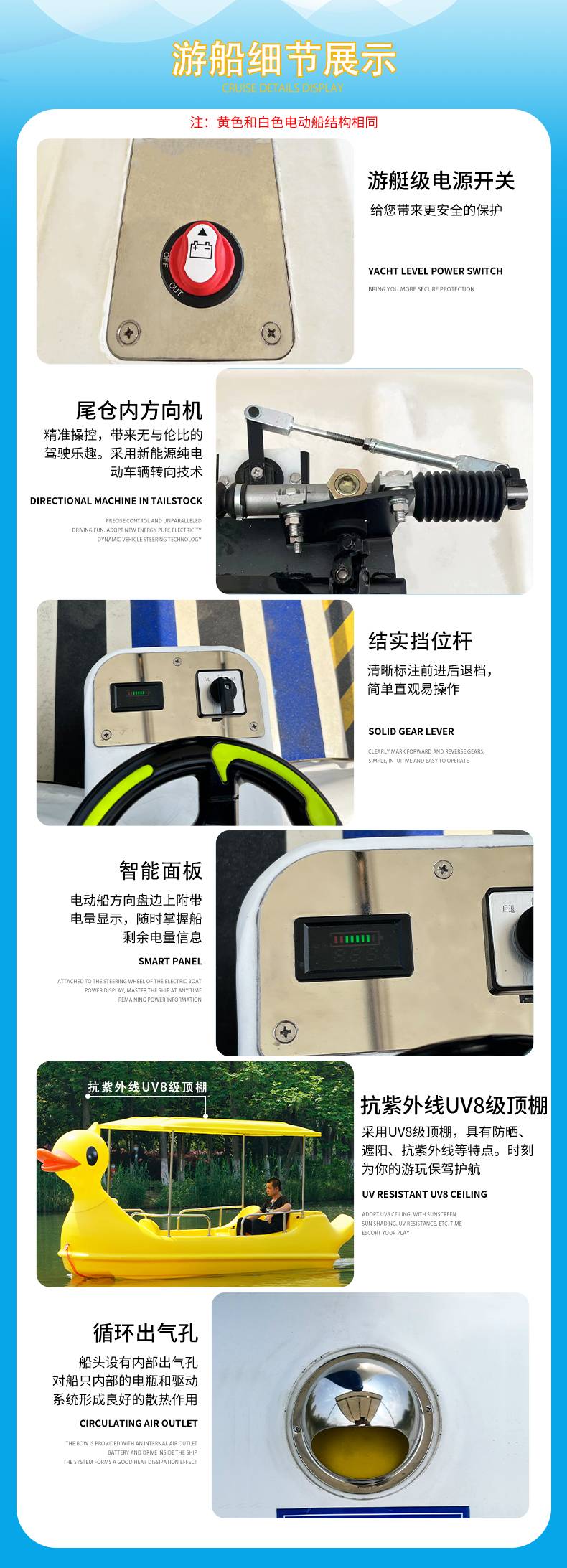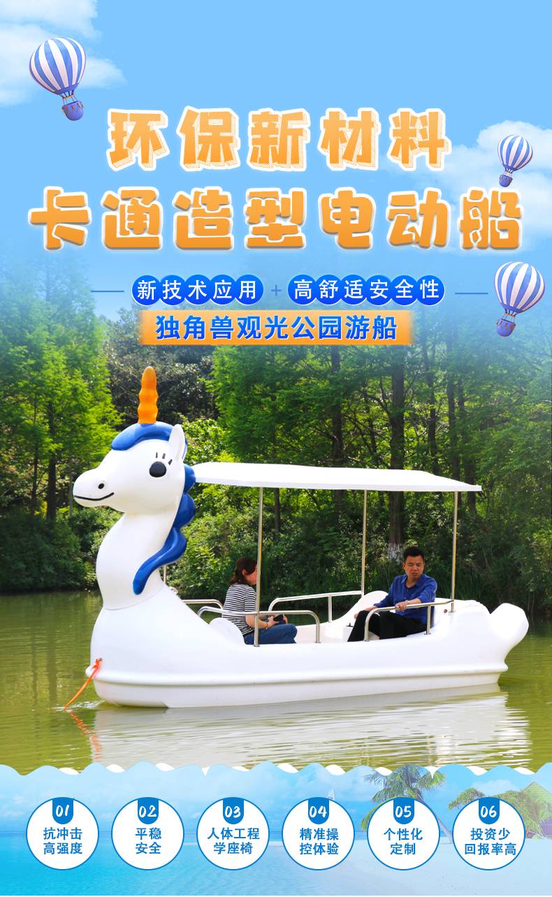 循环出气孔 适用于商业 平稳安全 独角兽公园观光电动船 舯威车船