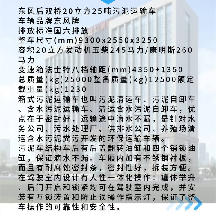 东风牌前四后八污泥自卸车 20方25吨污水淤泥运输车 污水公司专用车