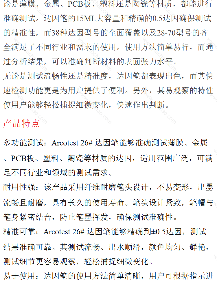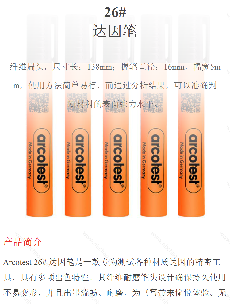 达因笔 材料达因 接触角电晕笔 碳箔达因值测试 arcotest 26#