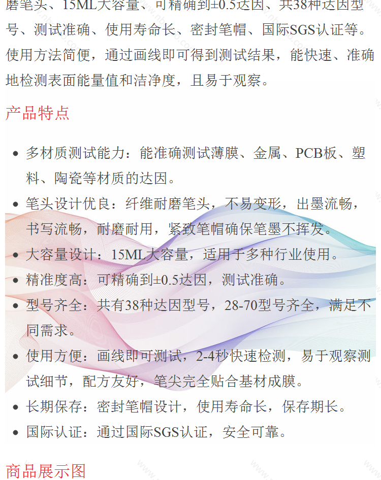 表面张力测试笔 达因笔 铜带达因测试 铝箔电晕笔 arcotest 48#