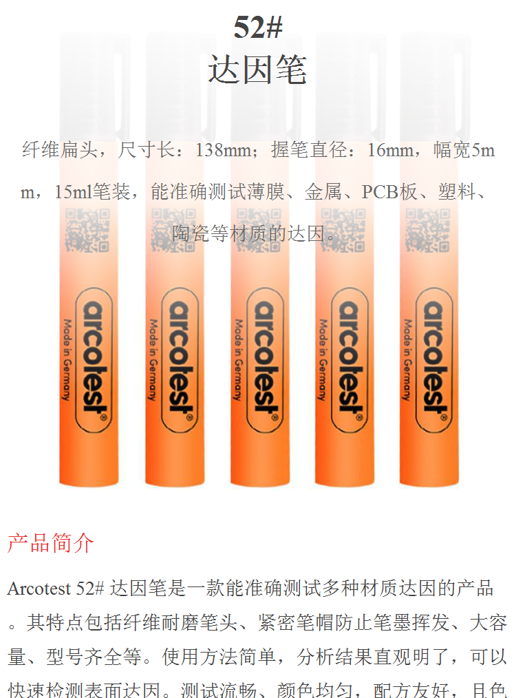 达因笔 表面能达因测试笔 印刷表面张力笔 塑料电晕笔 52# arcotest