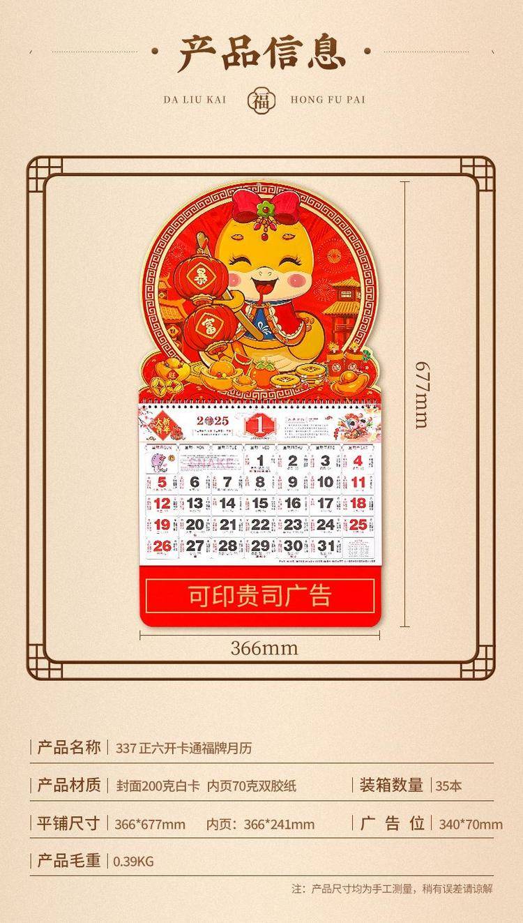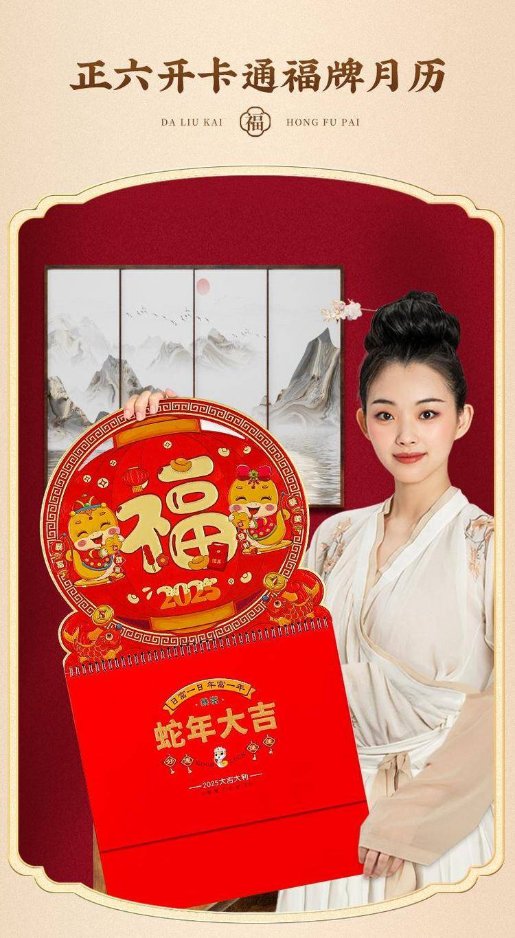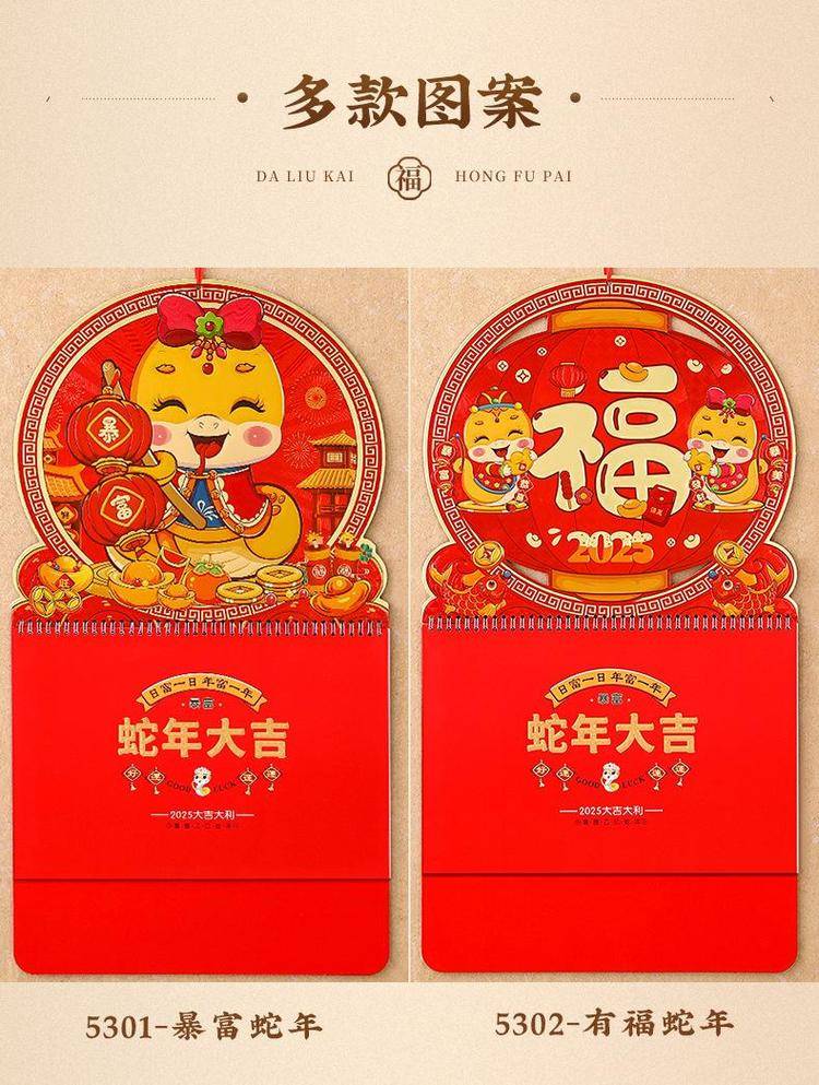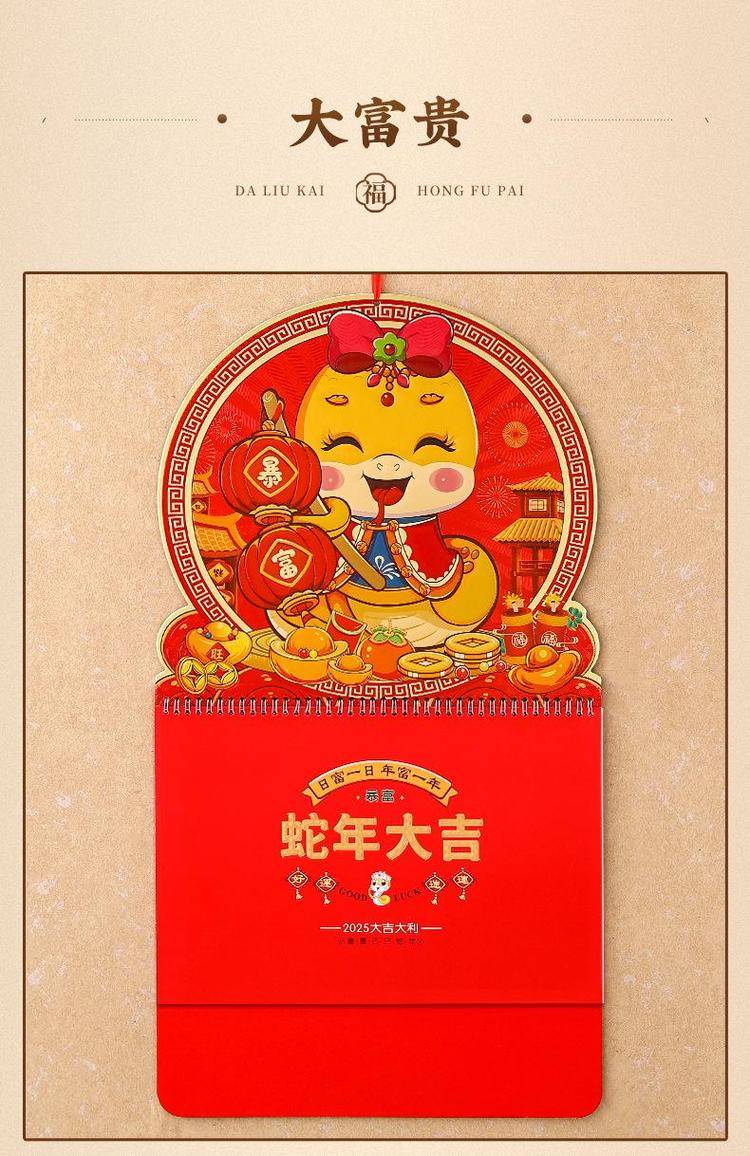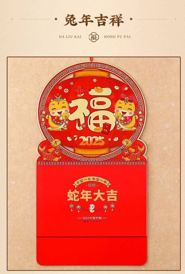 挂历2025年新款定制大号正六开卡通创意金箔家用挂墙式中国风月历