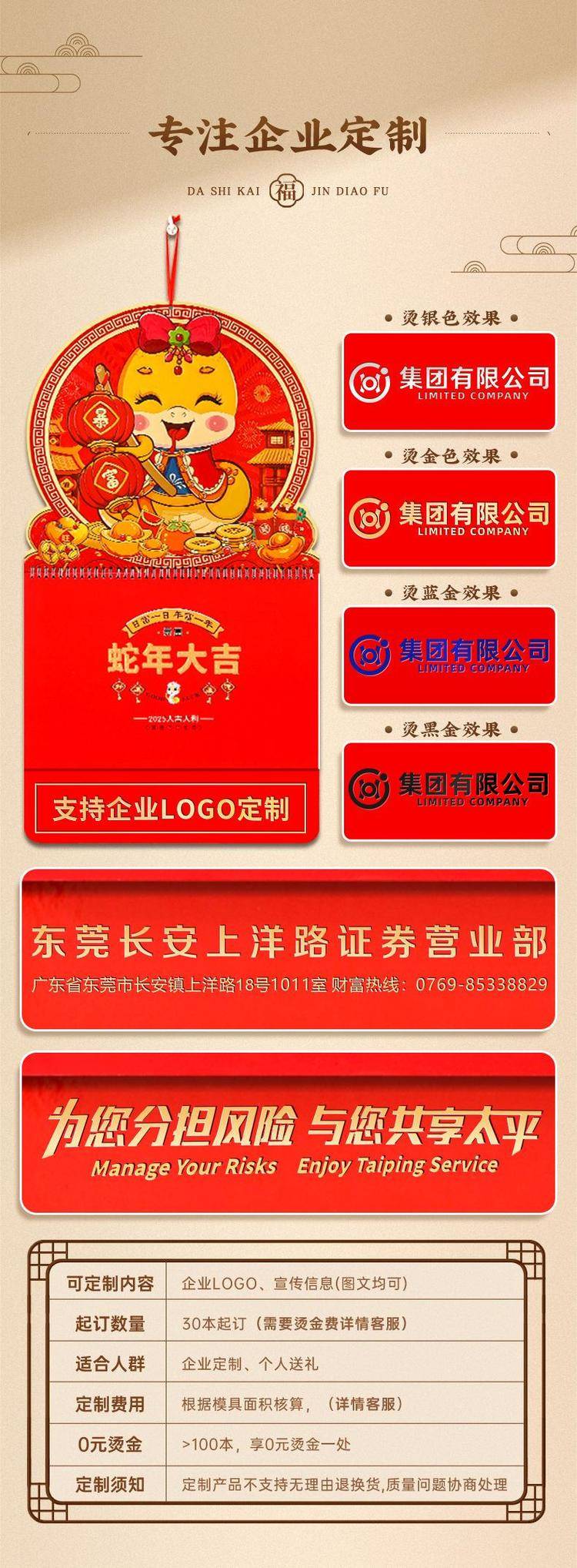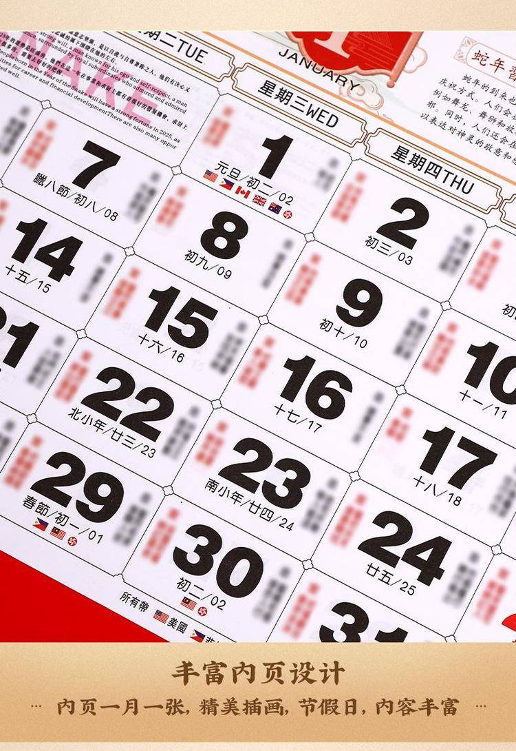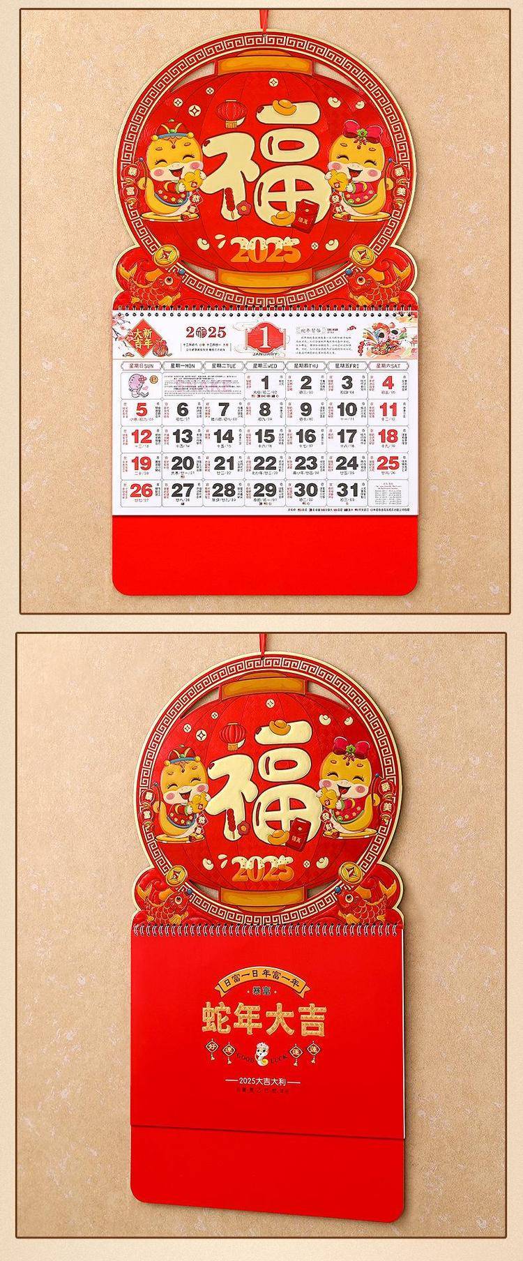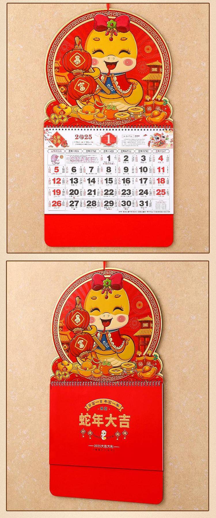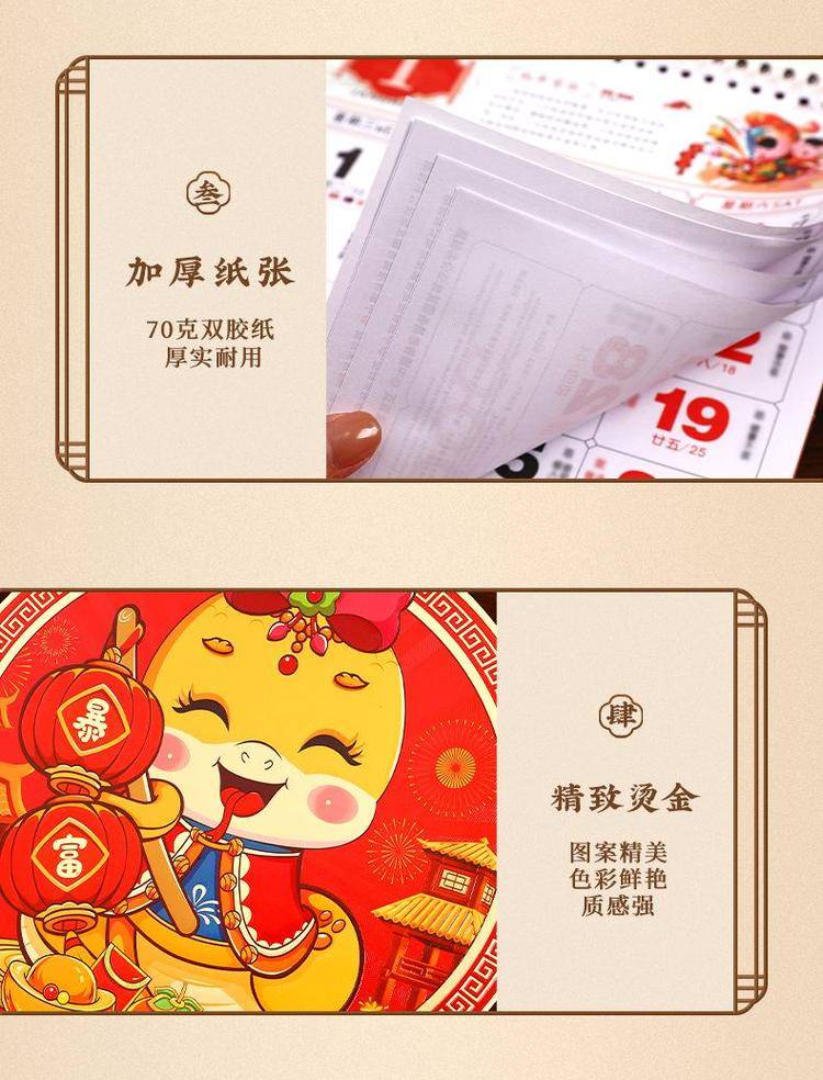 挂历2025年新款定制大号正六开卡通创意金箔家用挂墙式中国风月历