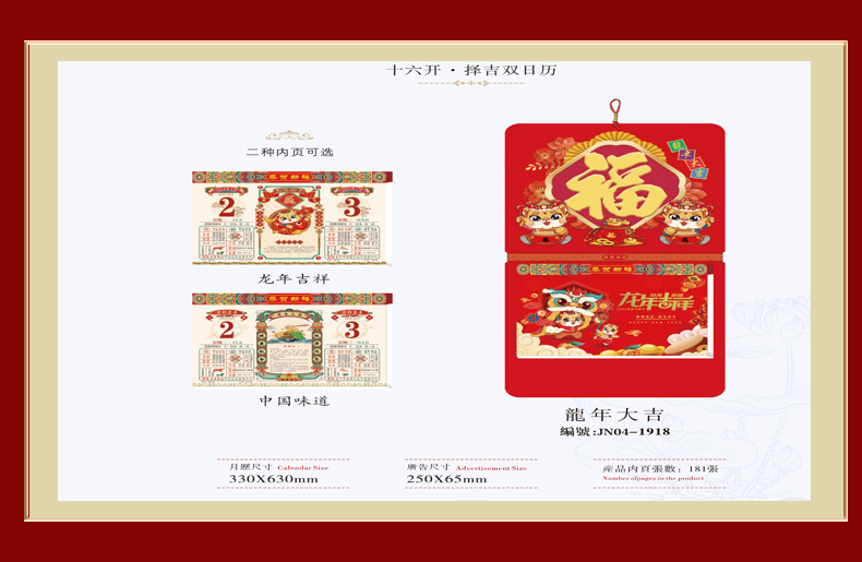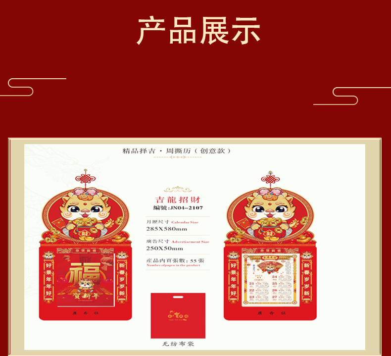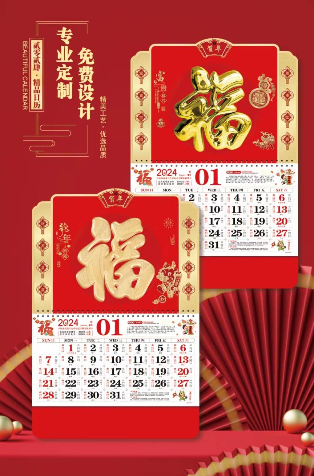 挂历2025年的新款定制日历家用挂墙大号龙年福字月历