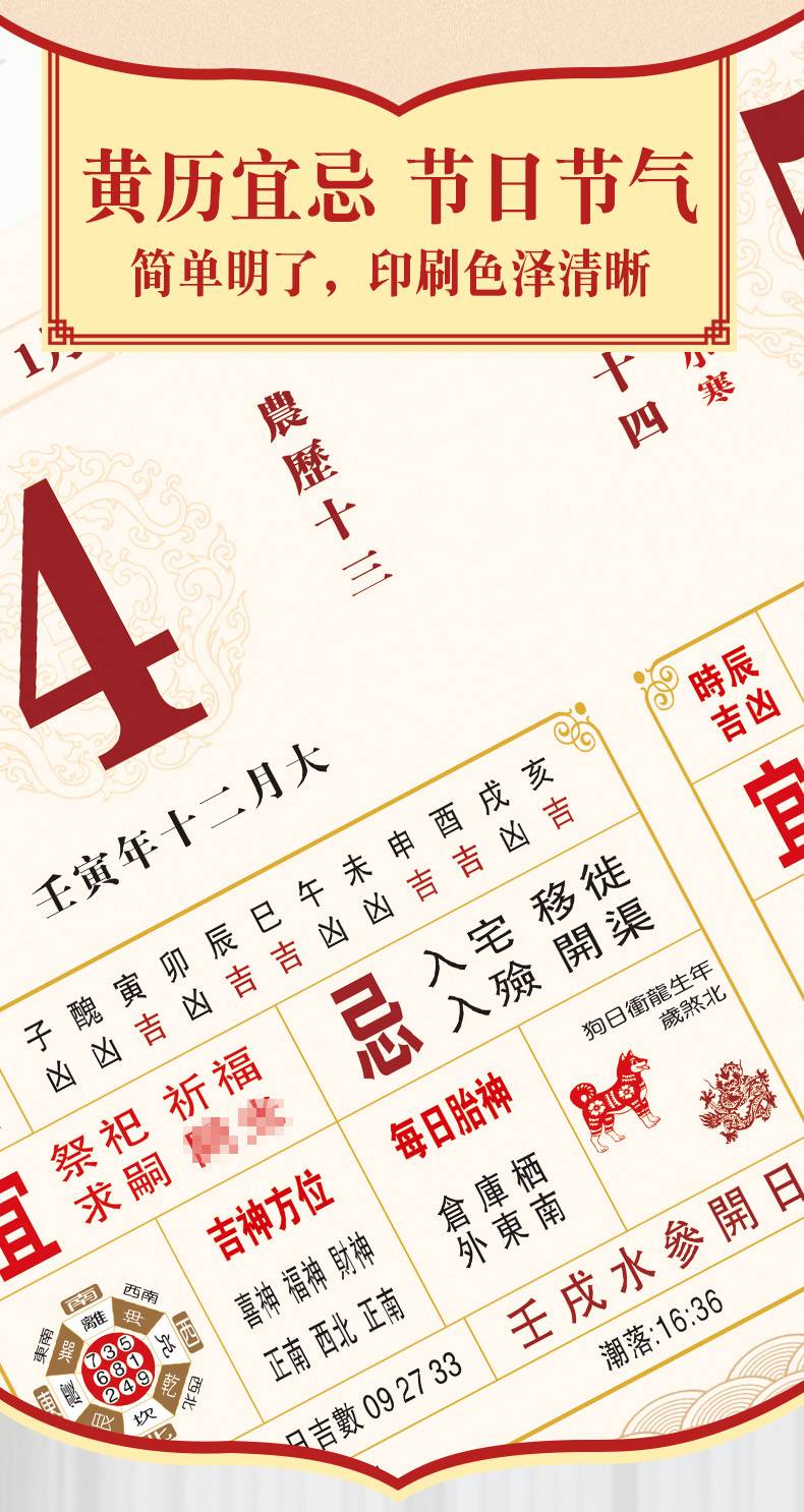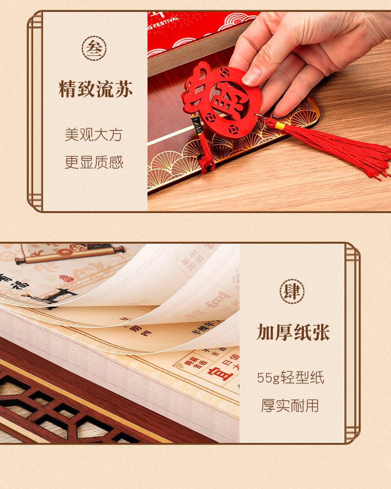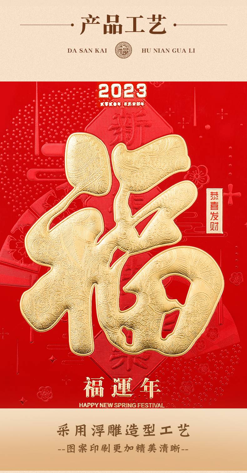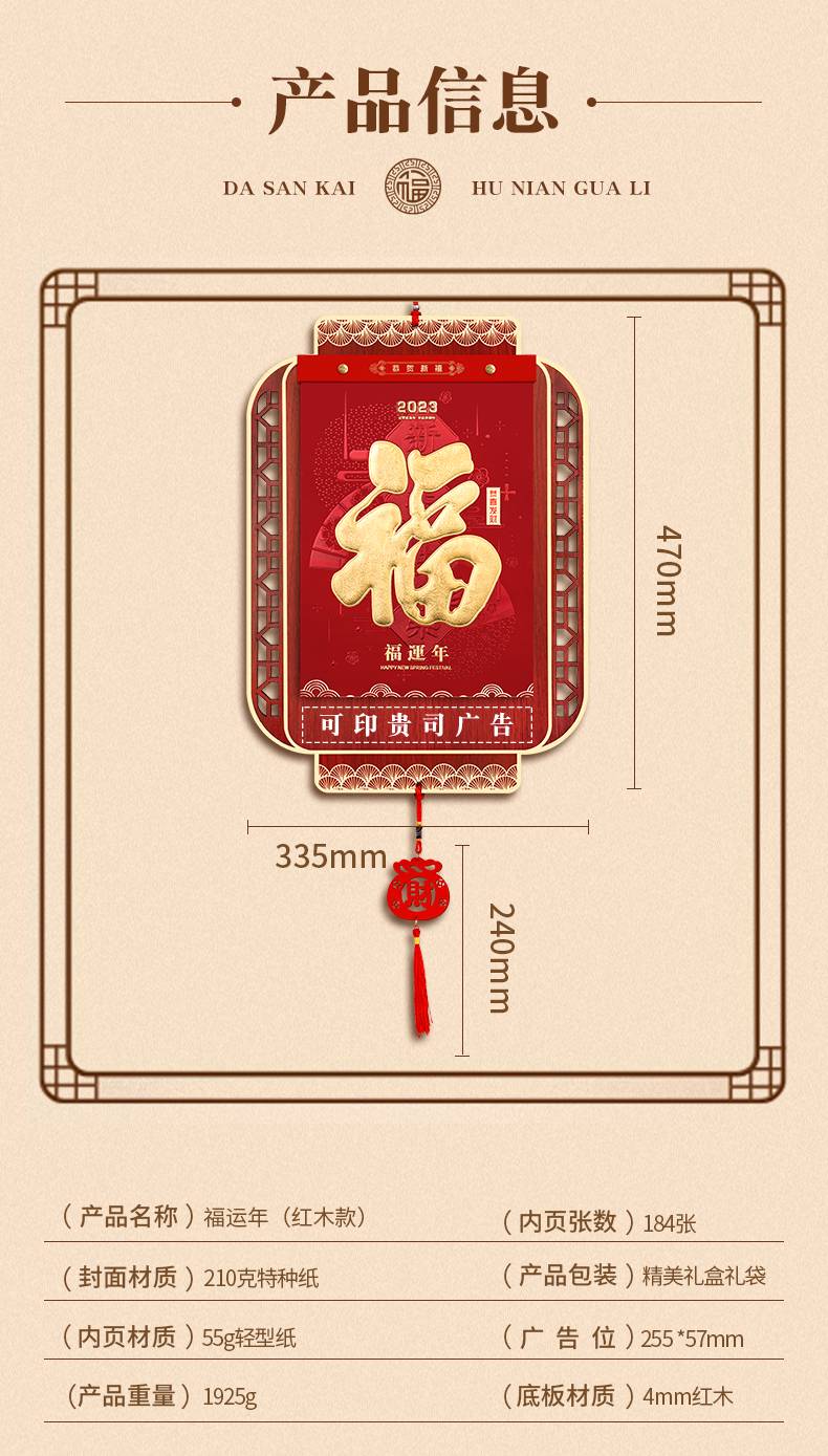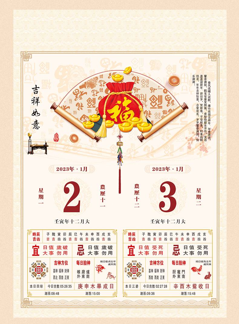 2023年兔年挂历福字定做手撕历万年历书老黄历家用挂墙批发大号月历吊牌皇历高档中国风通书挂式广告日历定制
