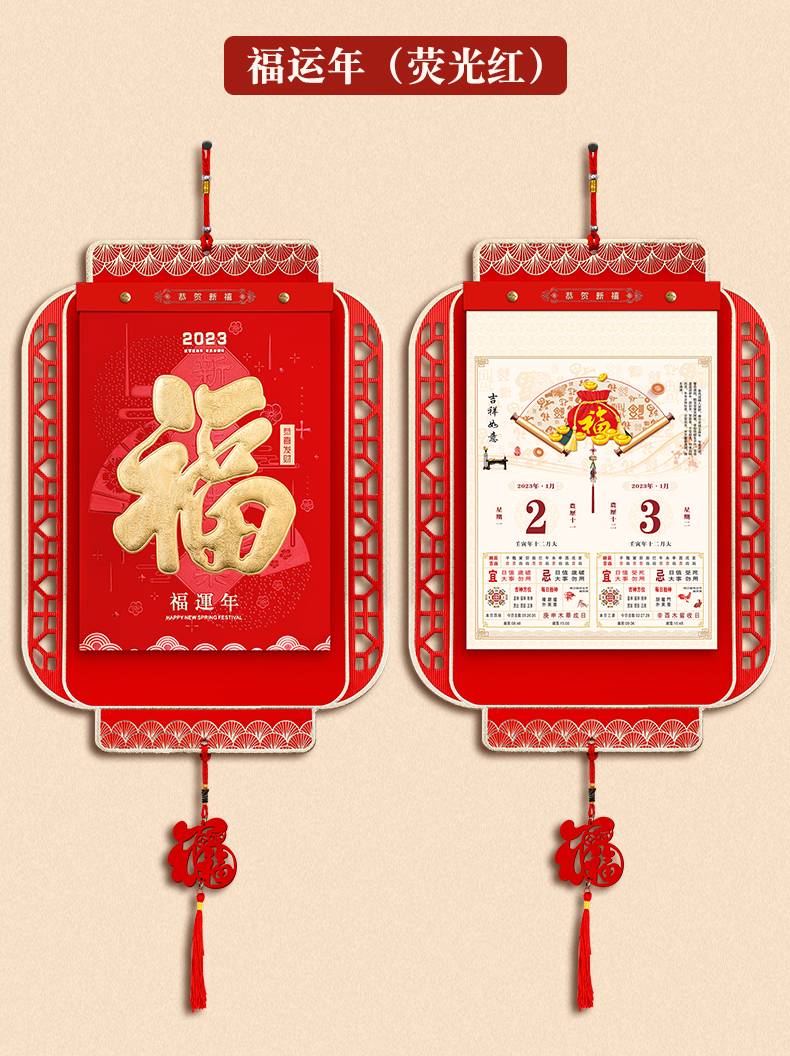 2023年兔年挂历福字定做手撕历万年历书老黄历家用挂墙批发大号月
