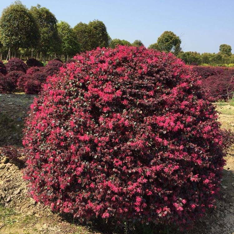 出售红花檵木球 120公分规格齐全绿化行道风景树颜色鲜艳红花继木