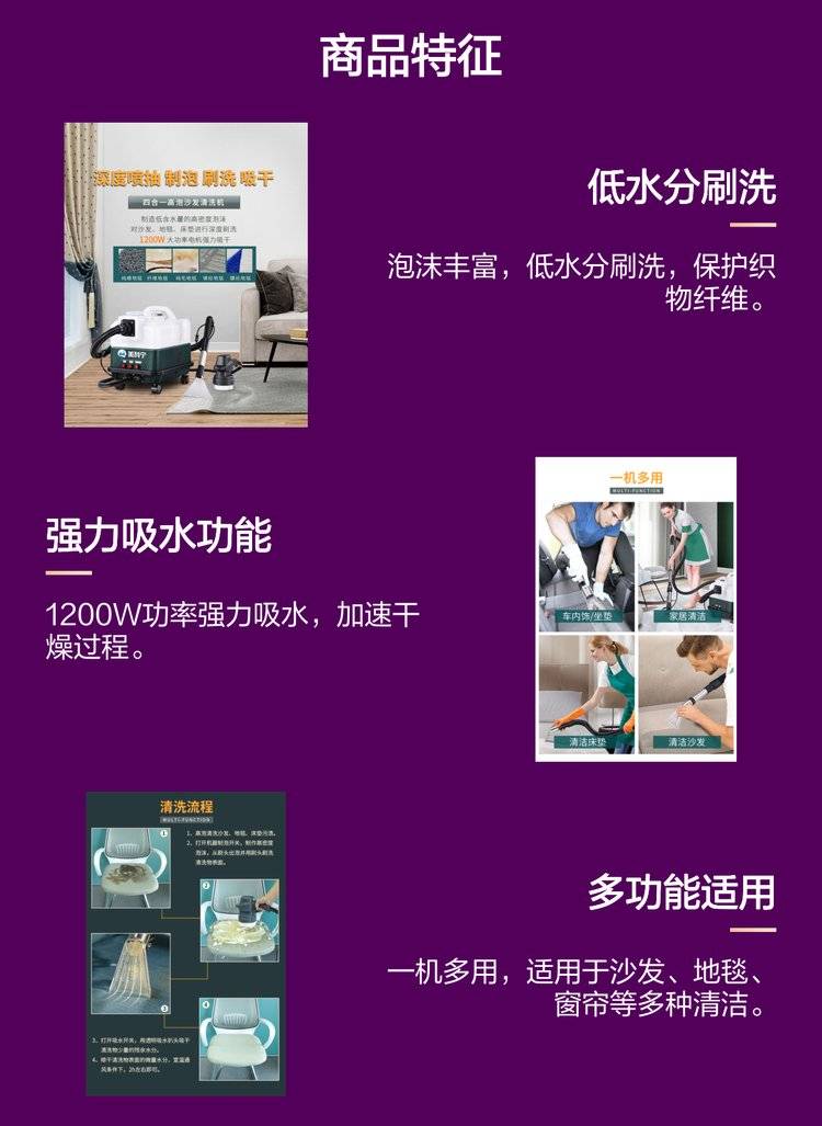 清洗各类沙发,床垫,窗帘,玻璃,大理石,汽车内饰等,如真皮沙发,布艺沙发,丝绒座椅,汽车座椅等