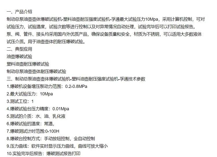 制动总泵油壶壶体爆破试验机-塑料耐压强度机-孚通