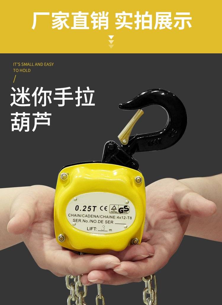 0.25吨迷你手拉葫芦起重工具批发零售多种规格吊装工具厂家批发