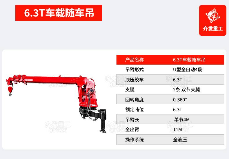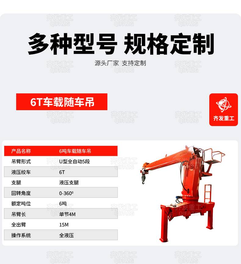 齐发 小型货车加装起重工具 工程装卸 多节臂液压起重随车吊