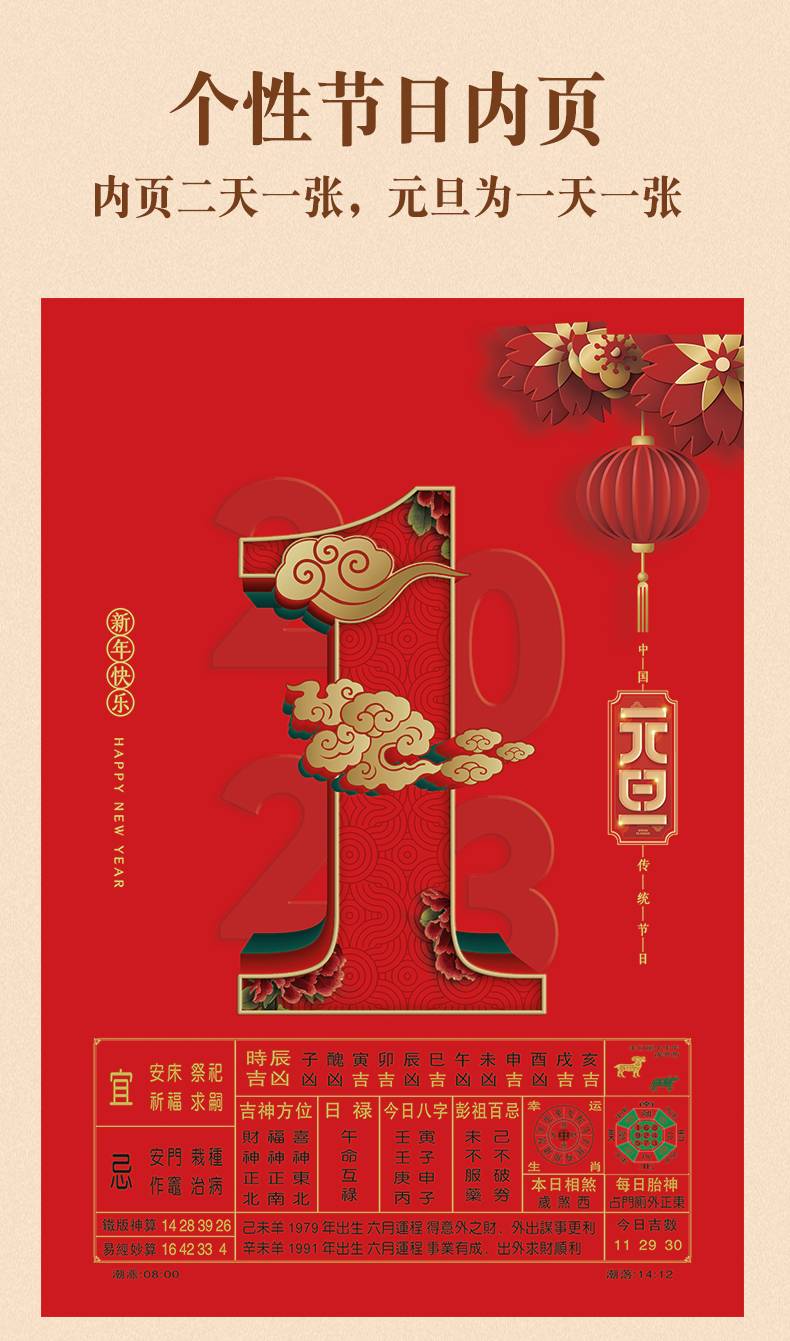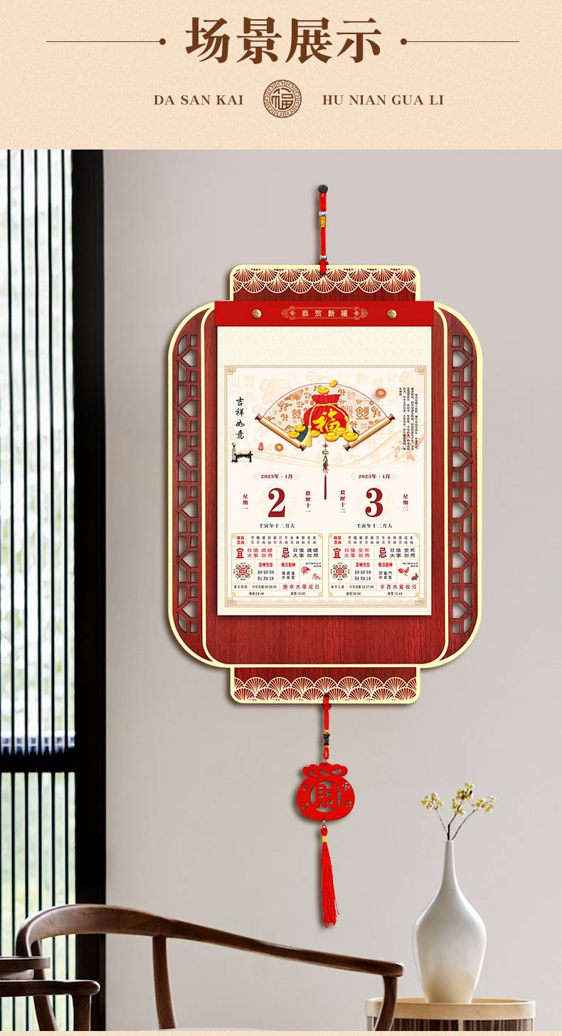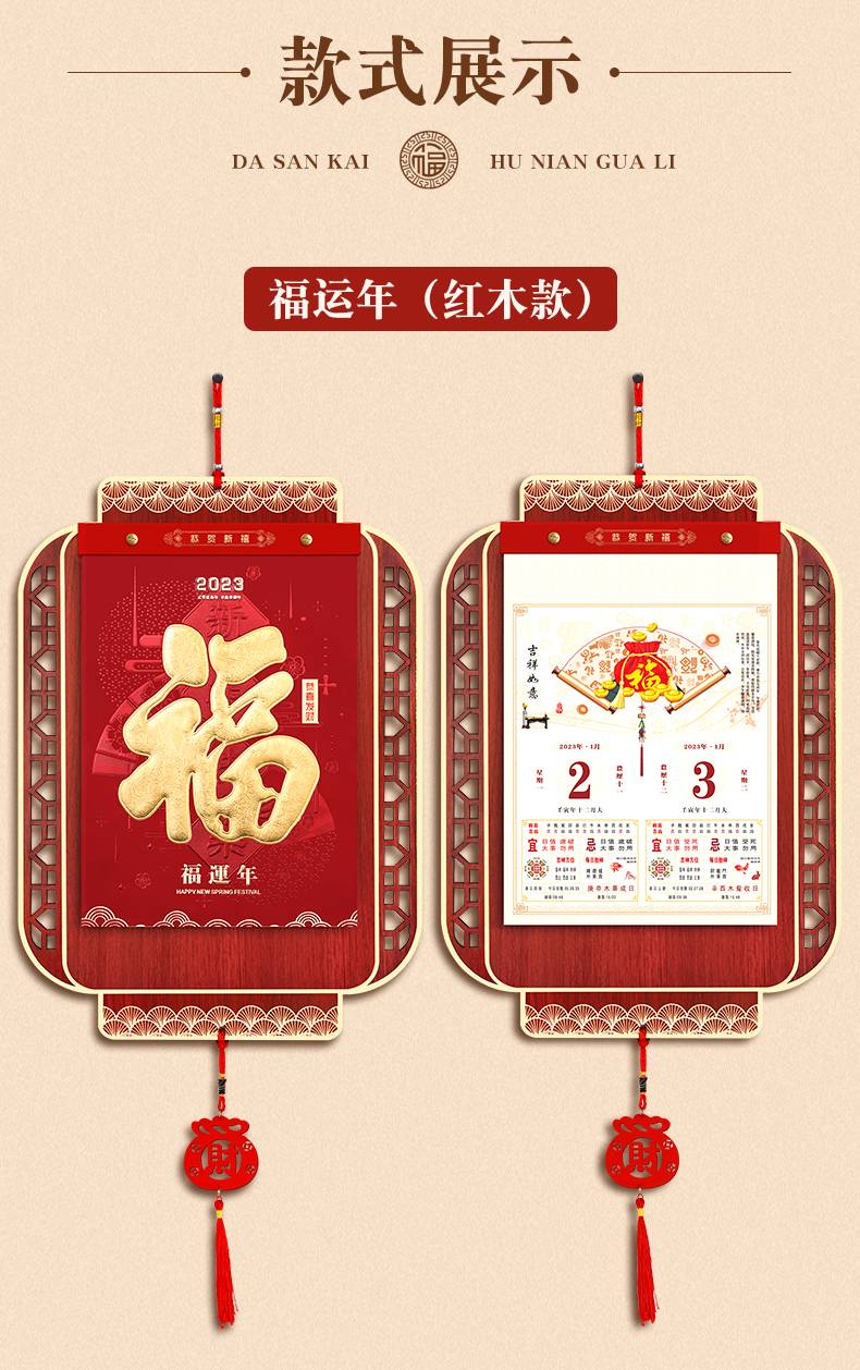2023年兔年挂历福字定做手撕历万年历书老黄历家用挂墙批发大号月历吊牌皇历高档中国风通书挂式广告日历定制