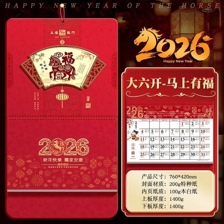 挂历2026年新款日历高档加厚大号大六开家用挂墙手撕式中国风