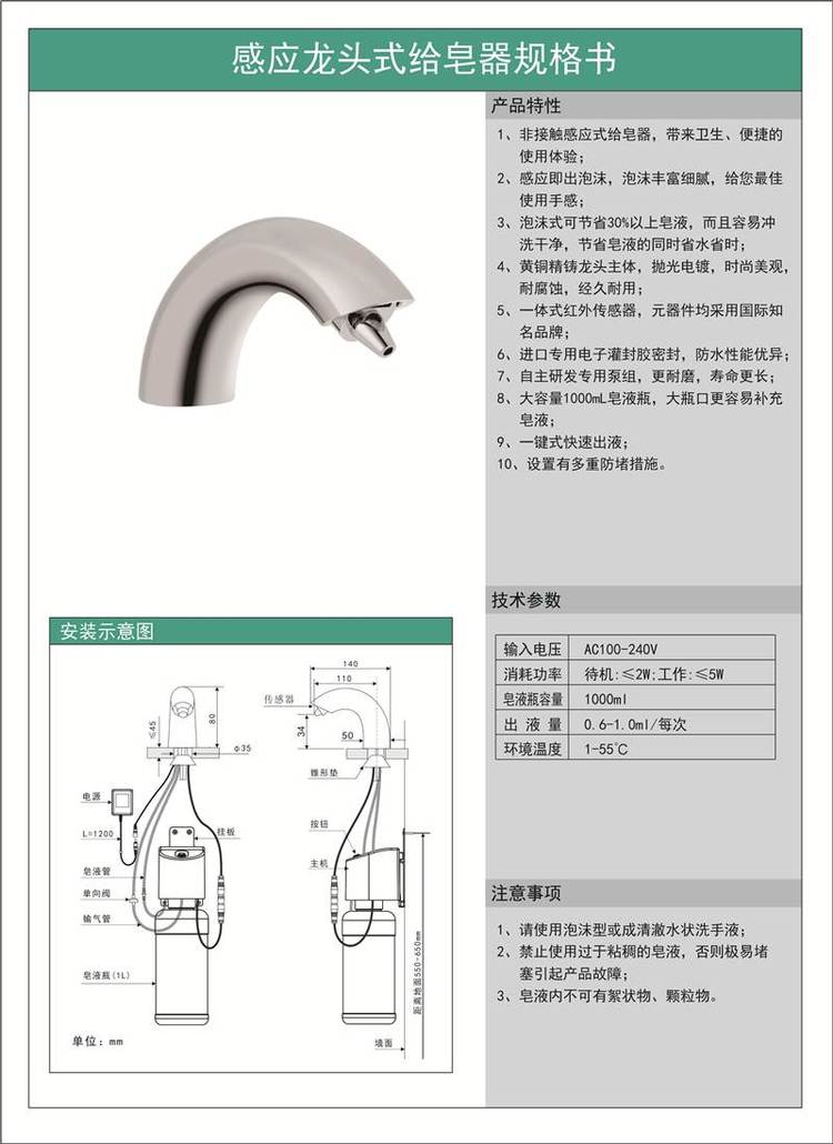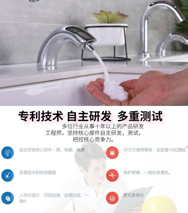 卫生间电动泡沫给皂器 红外线感应皂液器 金属 水龙头泡泡洗手液机