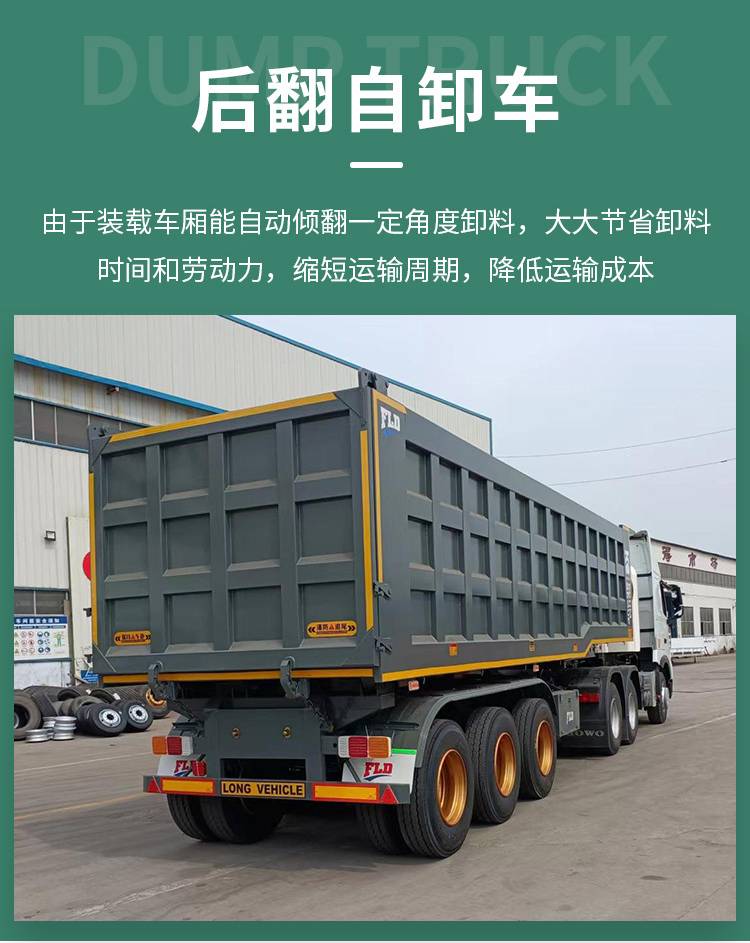 轻量化苍栏后翻自卸式半挂车 大型带爬梯标箱运输车