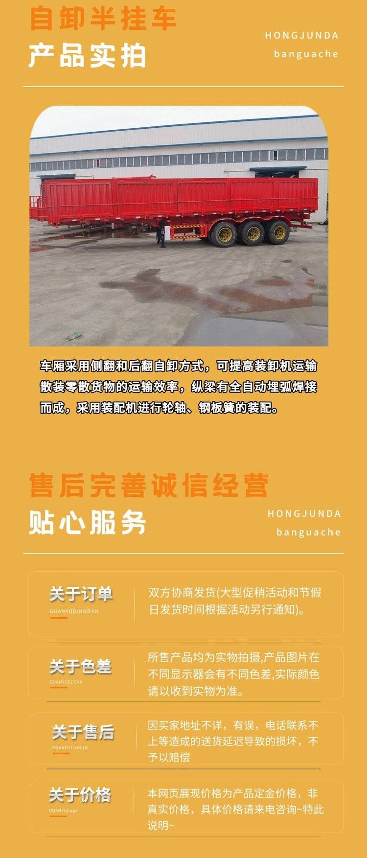标箱8.5米翻斗自卸半挂车 三轴后翻斗自卸车斗立翻 轻型抗载力强