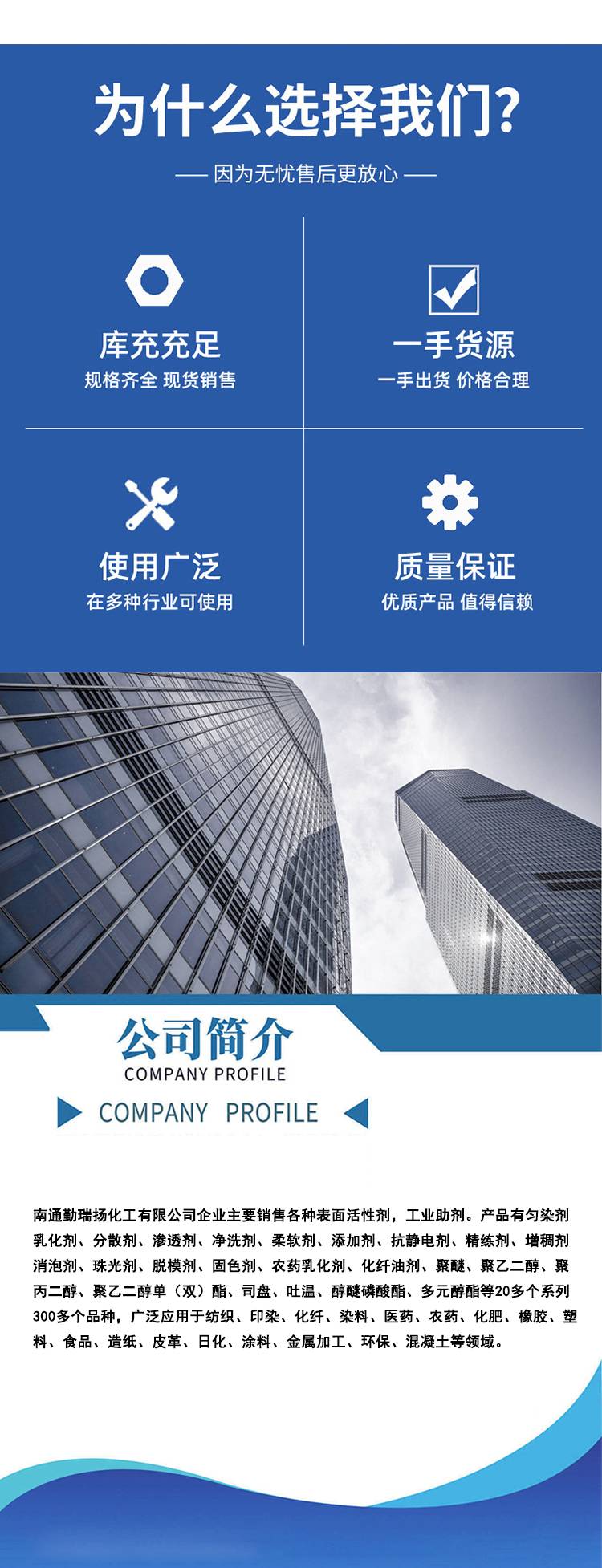 纺织助剂和工业清洗行业广泛应用,适用于生产渗透剂、精炼剂以及脱脂剂