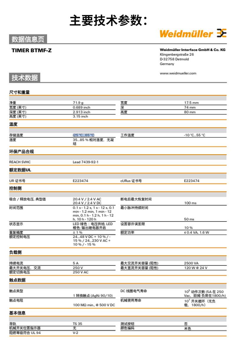 魏德米勒 电子元件机电一体化机械设备时间继电器 TIMER BTMF-Z