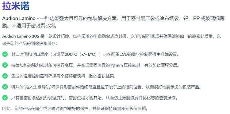 德国原装进口 AUDION 小袋台式封口机 Lamino系列