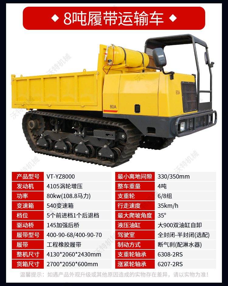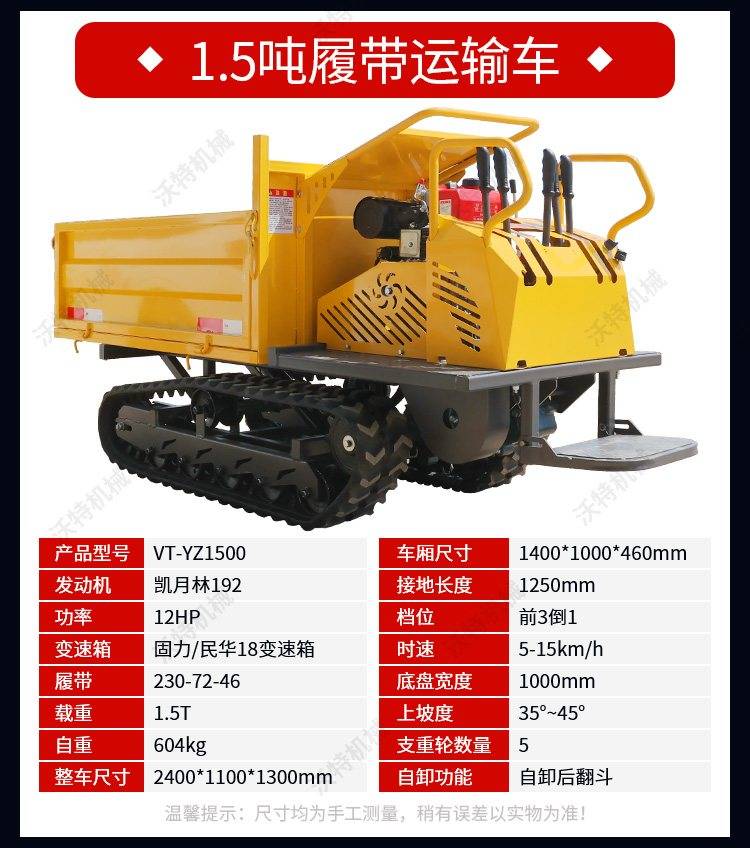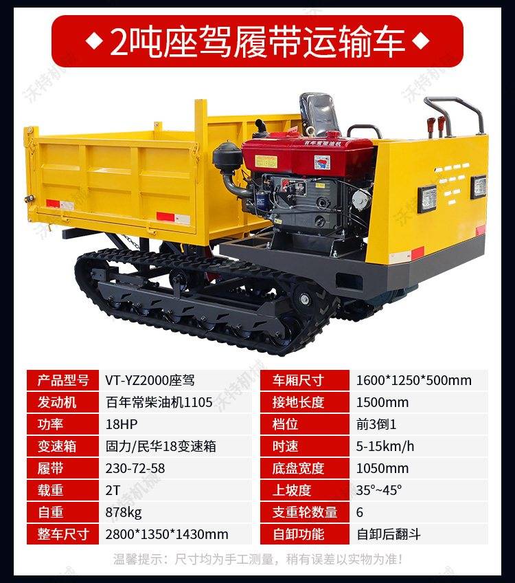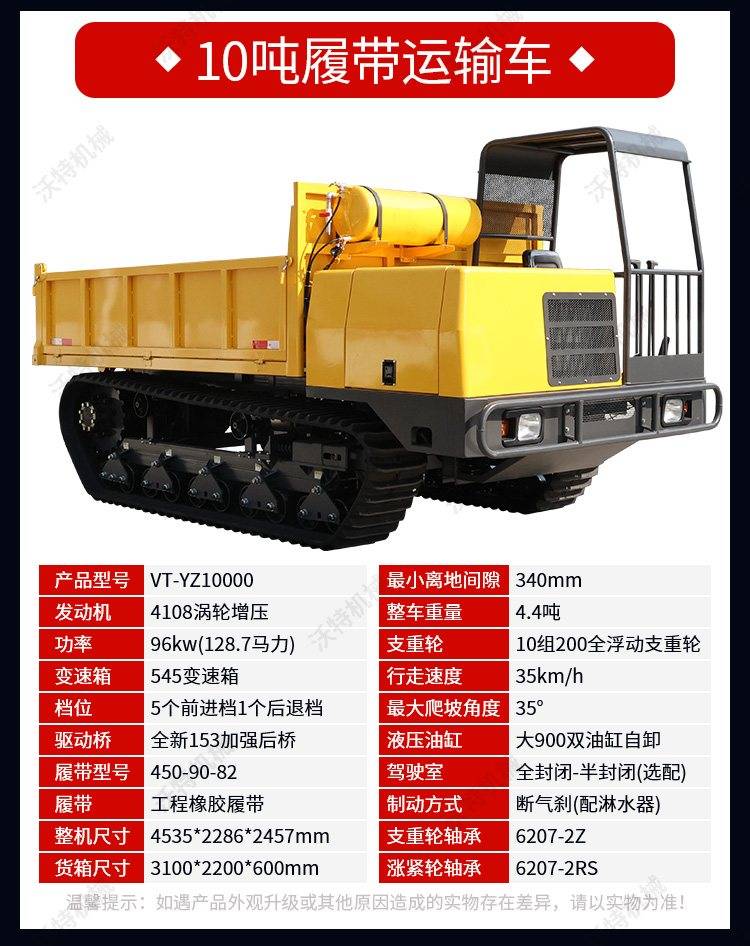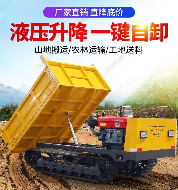 沃特10吨全液压柴油翻斗车 水路两用中型履带自卸车 农林工地运输