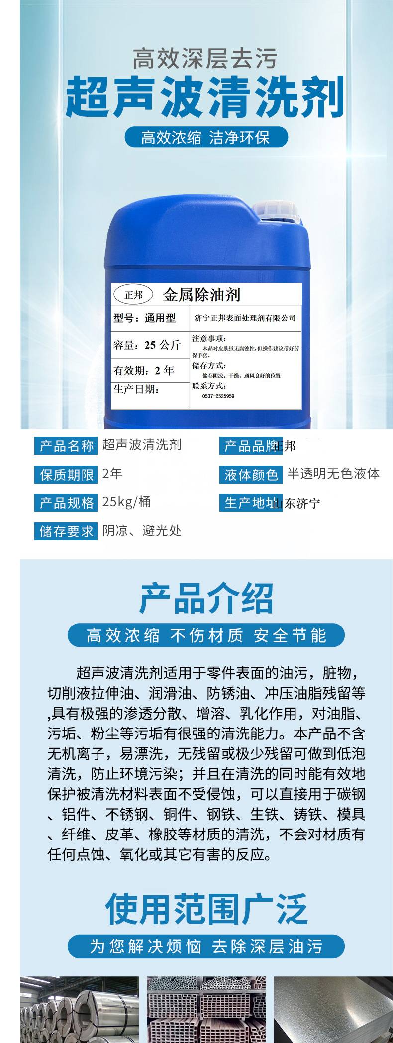 超声波清洗剂 工业金属五金零件除油剂 铜件铝件油污脱脂剂