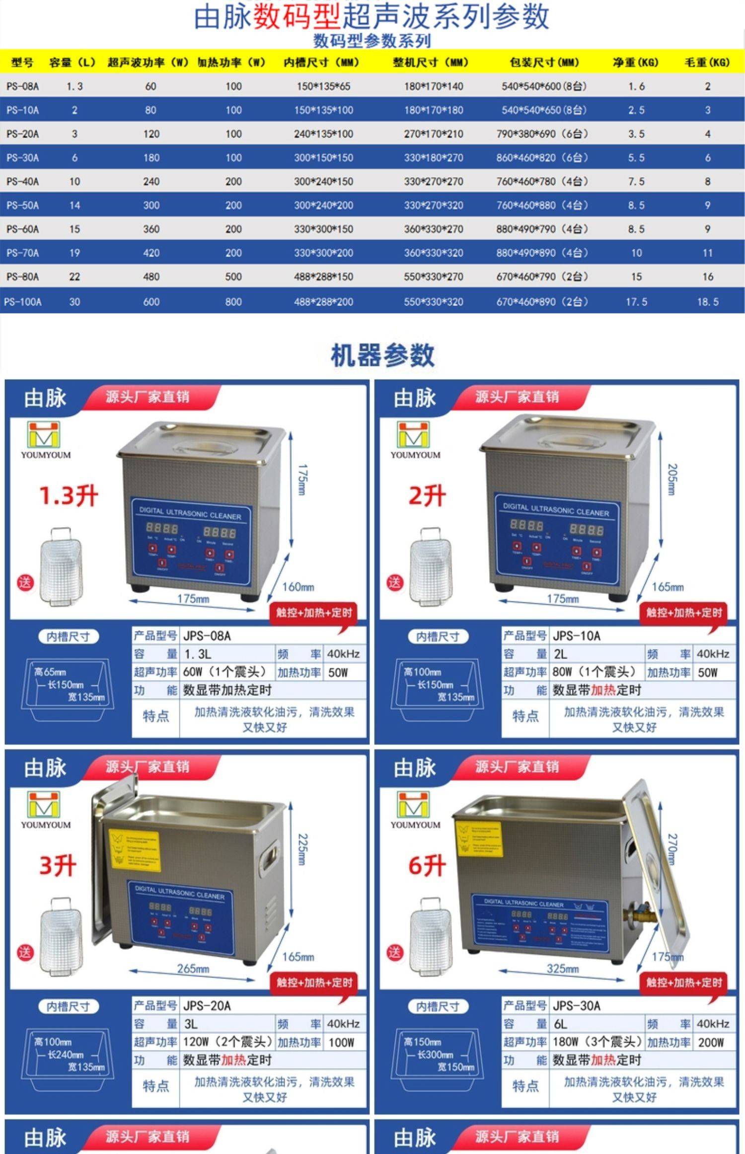 由脉youmyoum超声波清洗机五金零件实验室震荡器牙科渔轮除油30L