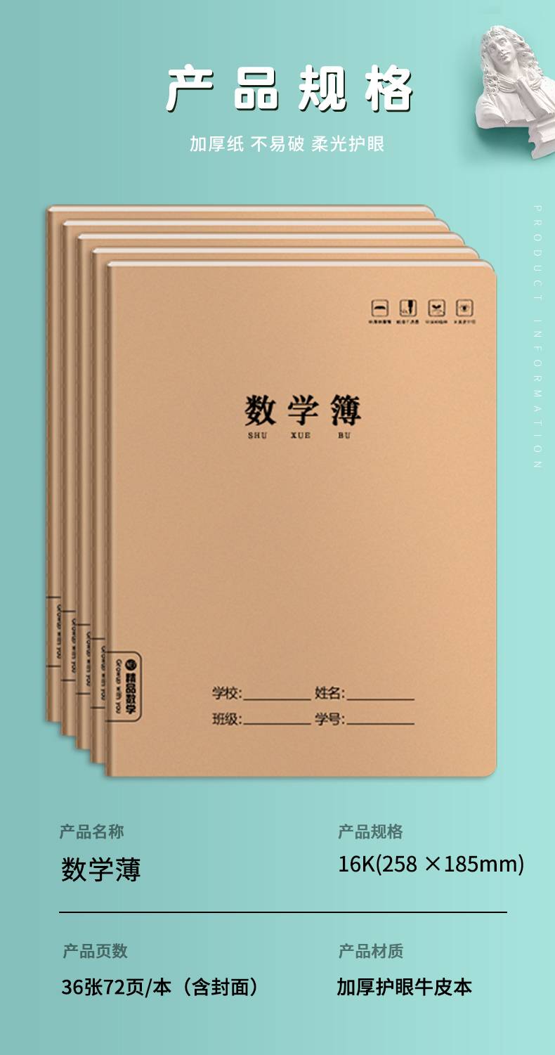 牛皮加厚数学本16k三年级3-6年级练习本中学生小学生统一作业本子