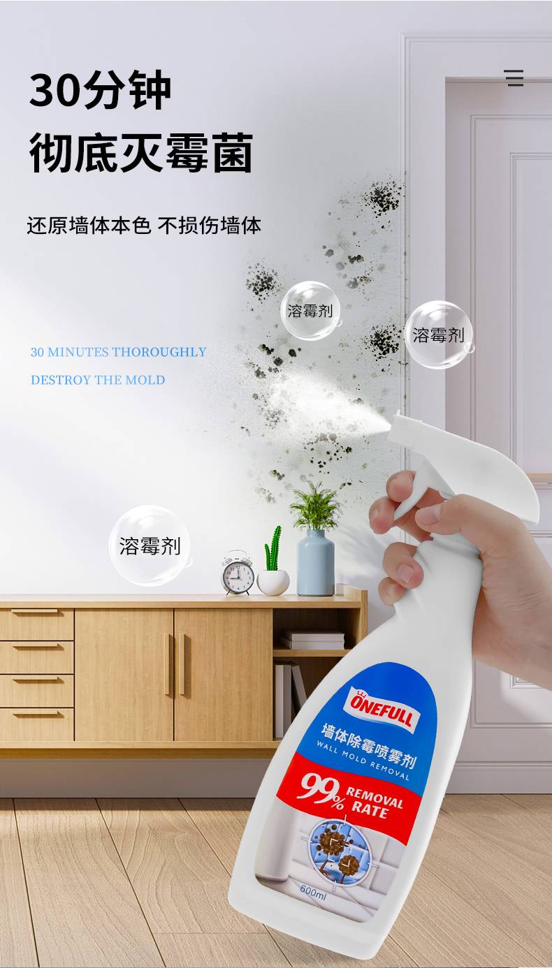 墙体除霉剂墙面白墙清洁去霉菌霉斑喷雾发霉清除家用墙壁去霉神器