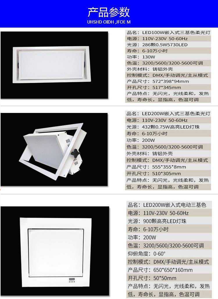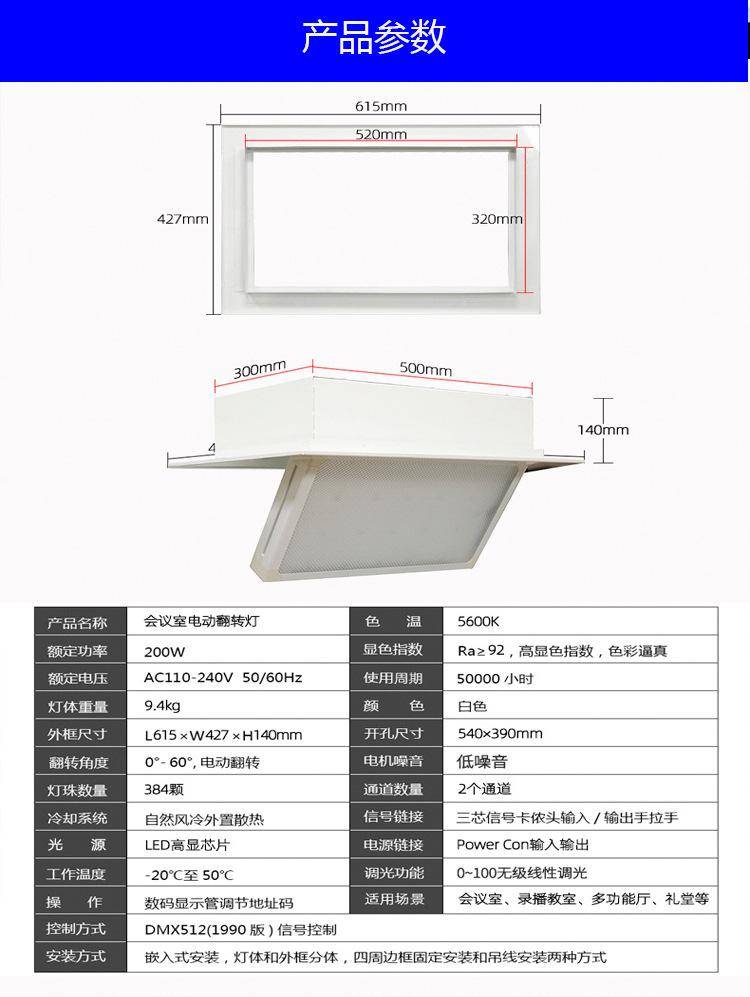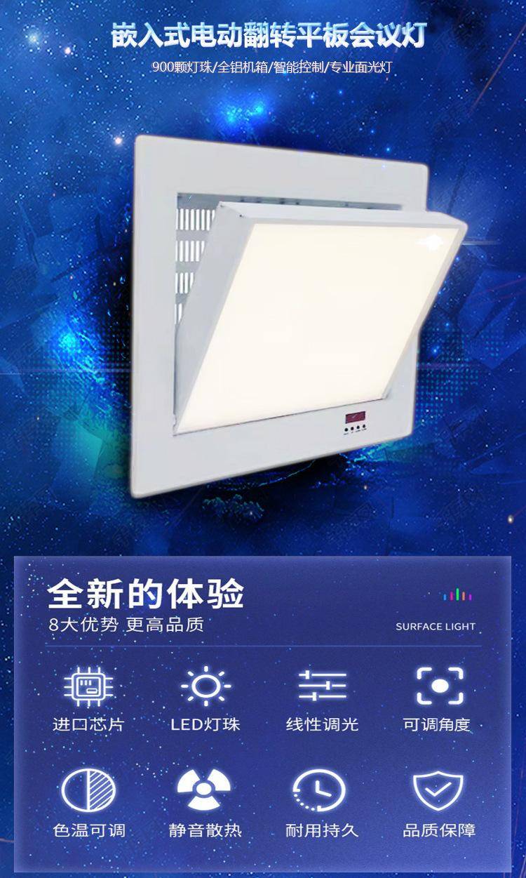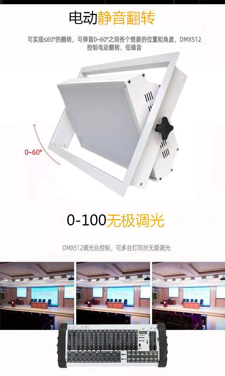 电动翻转平板灯三基色会议灯可调角度嵌入式LED柔光灯室内补光灯
