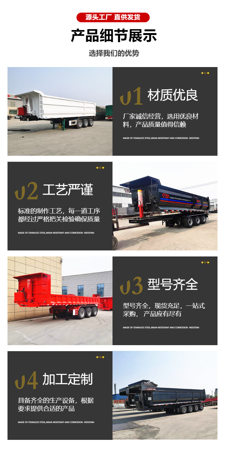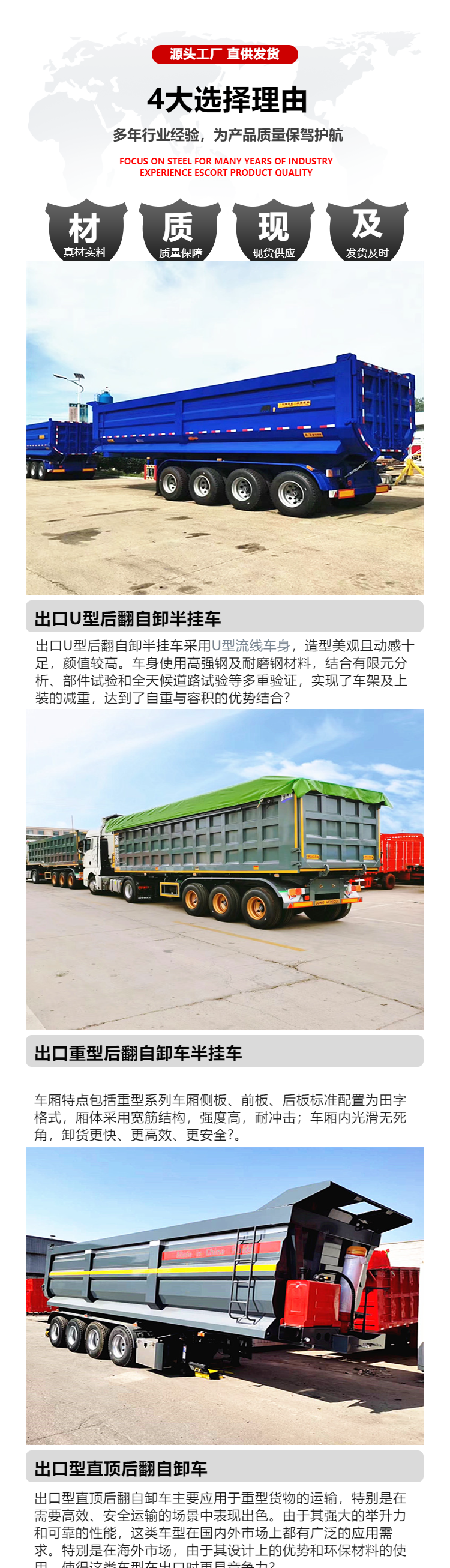 10.5米U型自卸车 重型半挂自卸直翻车 出口沙石料后翻卡车
