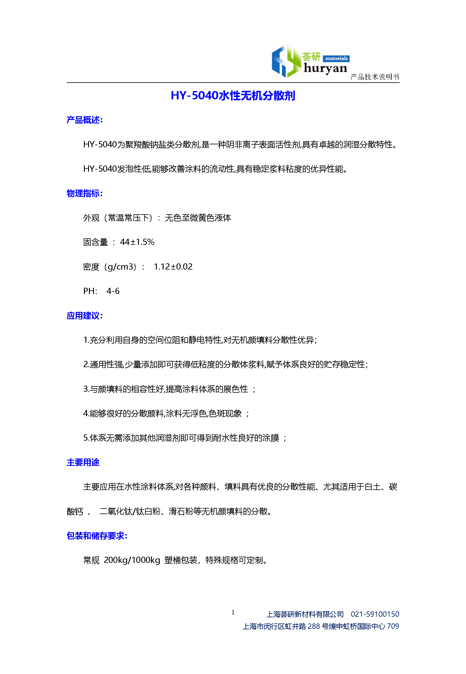 2222荟研厂家 类似 圣诺 普科 分散剂 性价比高 通用建筑涂料助剂 HY-5040