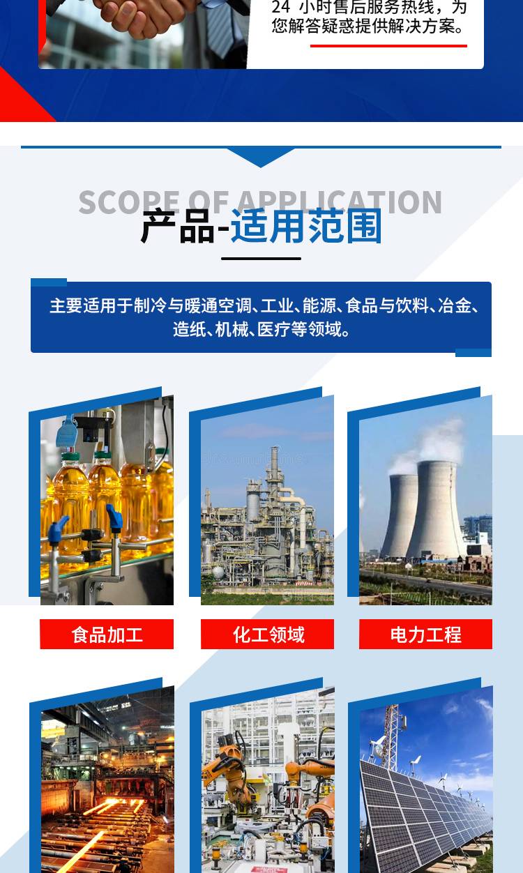石油、化工、冶金、电力、纺织、印染、食品等