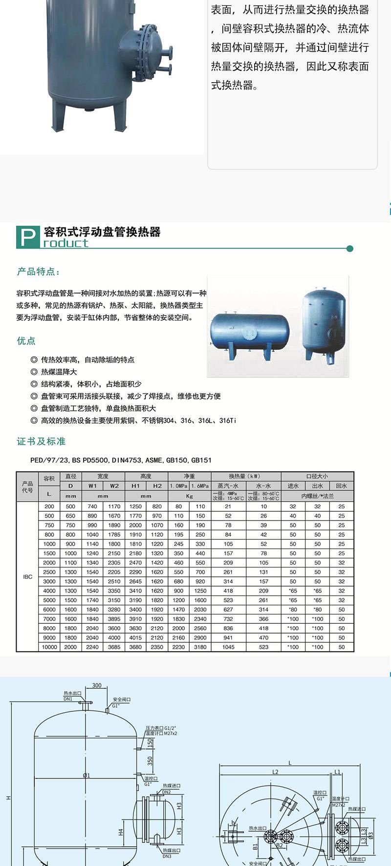 即热式 半容积式热交换器 生活热水储水罐 规格多样 金霏供应