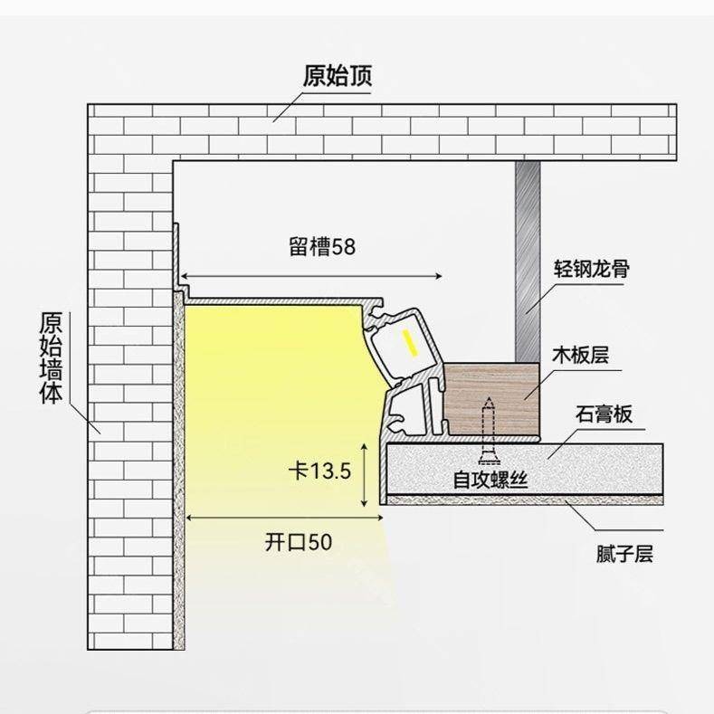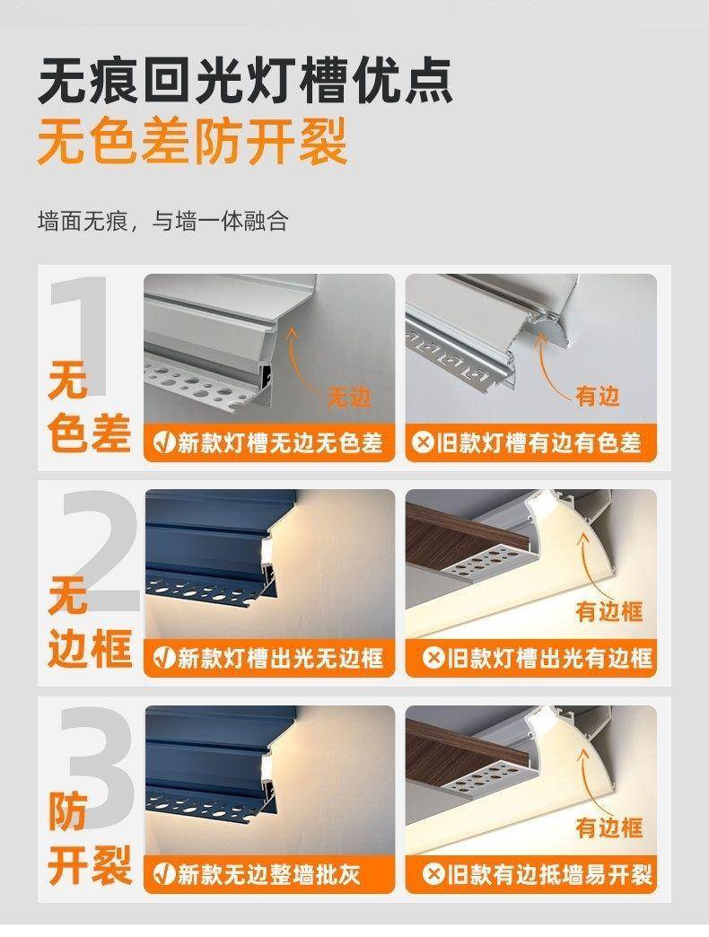 悬浮吊顶极窄洗墙灯槽嵌入式反光灯条客厅隐形回光灯带线形灯铝槽