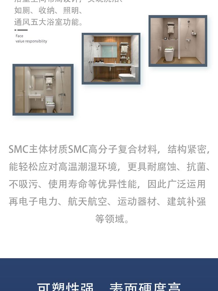 整体卫浴 干湿分离卫生淋浴房 材料轻 密度大 强度高