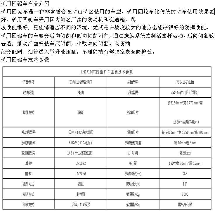 矿用四驱车 柴油后驱 井下自卸车 地下运矿车 发货及时