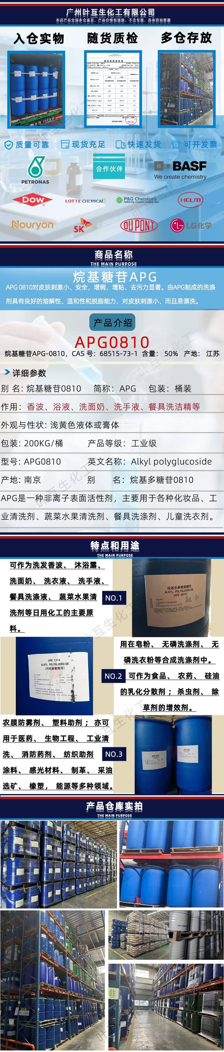 2222金兰APG-0810 APG0810日化级碱性烷基糖苷 烷基多糖苷APG洗涤料助剂