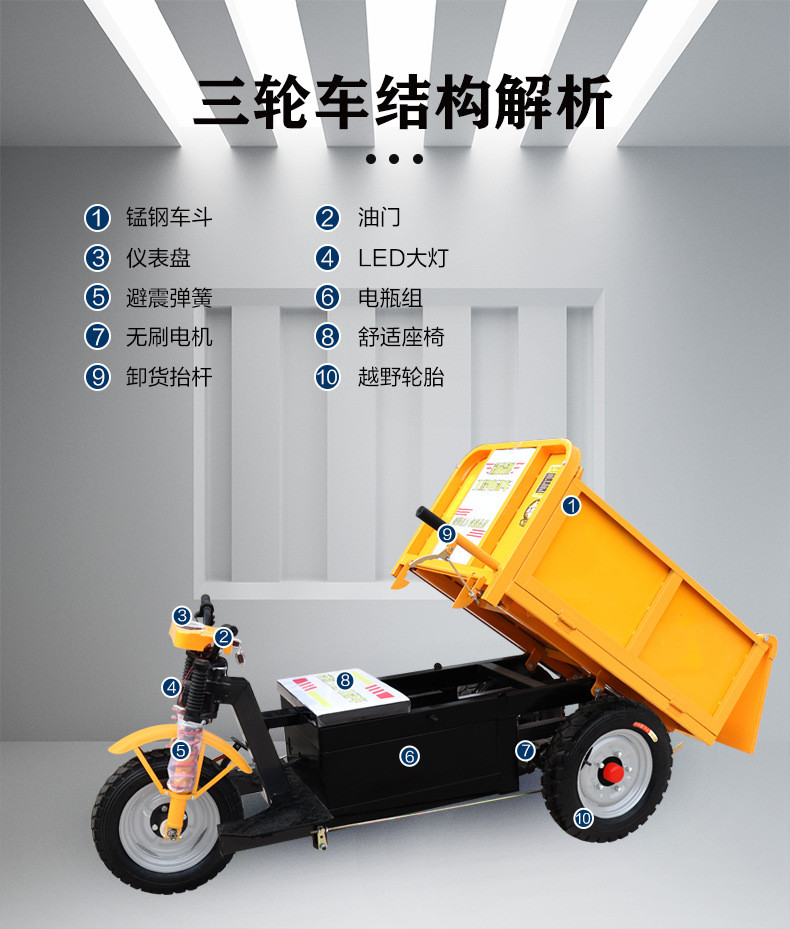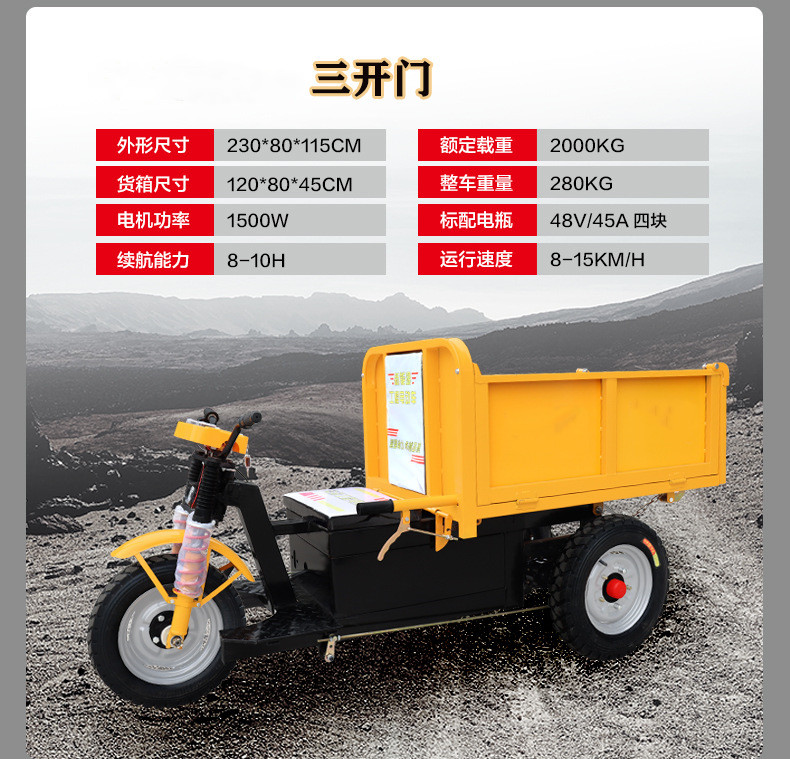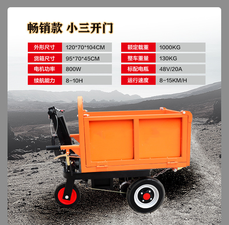 3、具有爬坡能力强,转向角度大,手把方向盘,安全节能等特点,并且维修简单,价钱便宜,经济,可根据客户需求定做各种型号。r