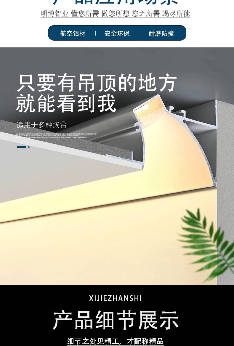 明装石膏线反光槽线性灯回光铝槽悬浮吊顶COB灯LED免吊顶洗墙灯槽