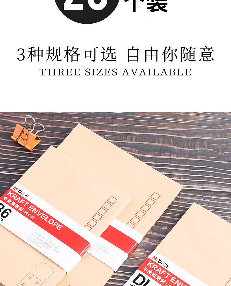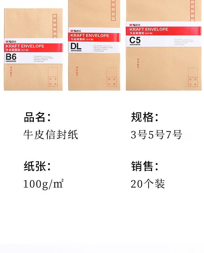 晨光C5牛皮纸信封 7号信纸袋增值税发票工资袋 20个/包AGWN8533