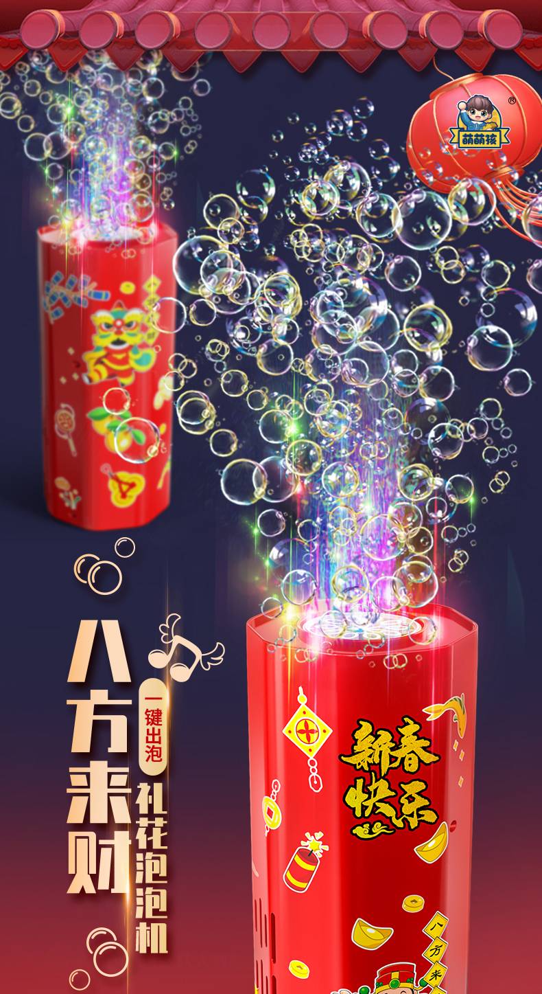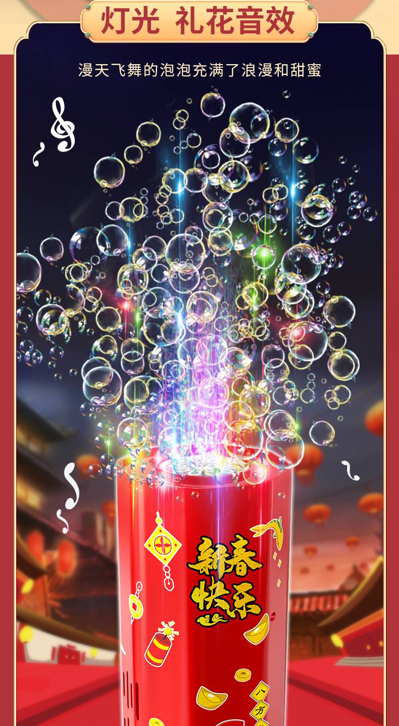 新年鞭炮烟花泡泡机加特林电动不漏液泡泡枪灯光音效节庆儿童玩具