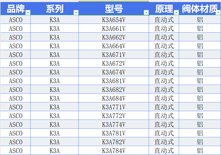 ASCO K3A 系列燃气切断阀 铝压铸阀体 直动式和先导控制式型号