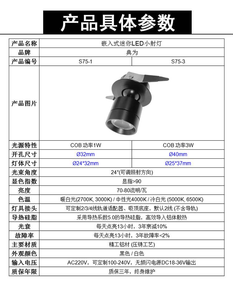 典为展柜迷你小射灯1瓦开孔32mm酒柜博物馆展示柜嵌入式LED聚光灯