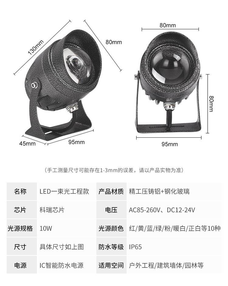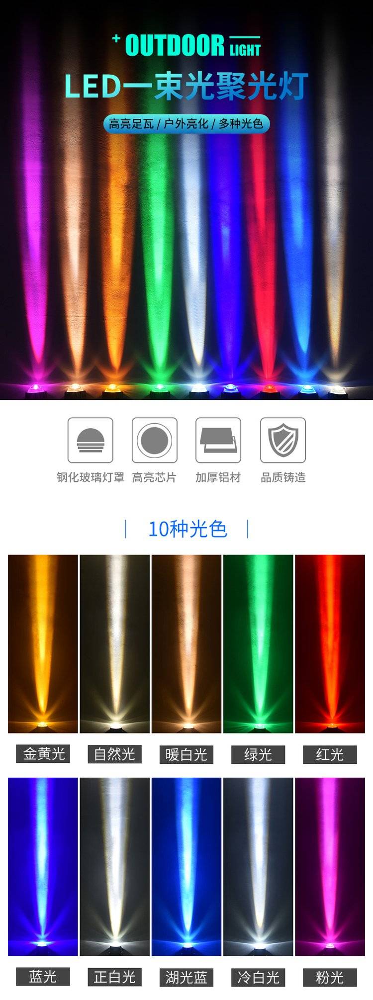 一束光射灯led户外聚光灯外墙罗马柱投射七彩庭院防水低压光束灯