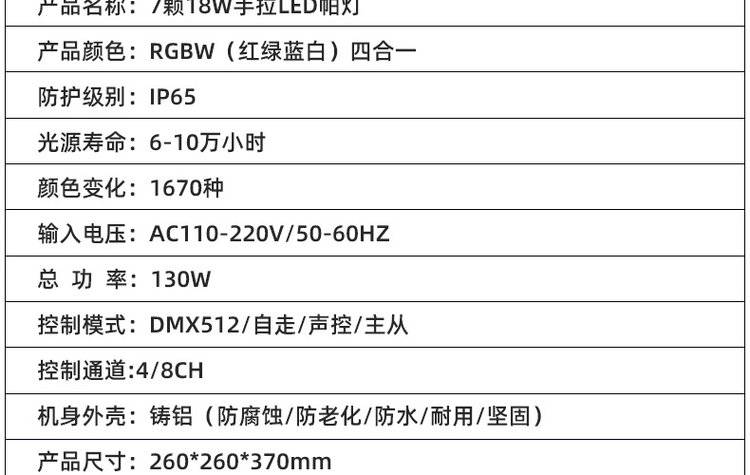 帕灯7*18W户外防水染色 舞台六合一全彩婚庆酒吧聚光灯