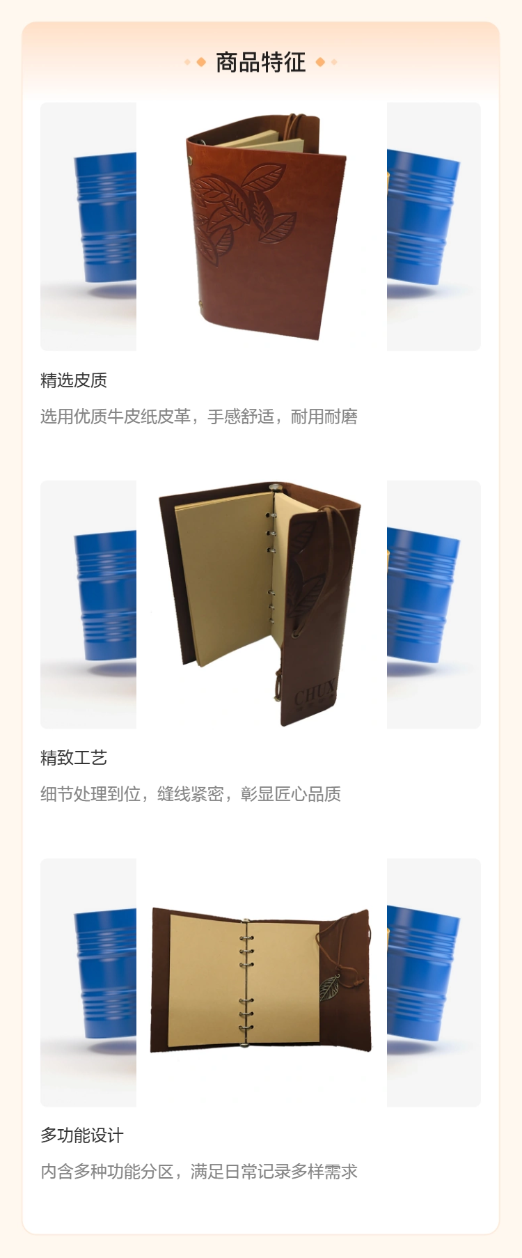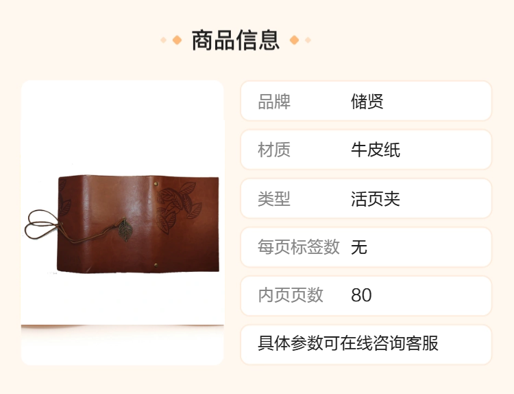 储贤PU封面活页夹笔记本 80页牛皮纸内页树叶纹路可换页