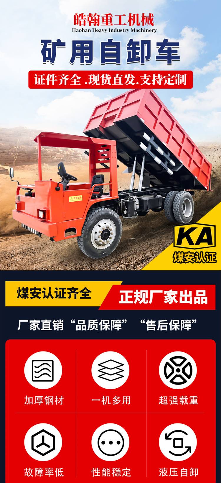矿用宽体自卸车 全液压转向系统 四不像矿山翻斗运输车