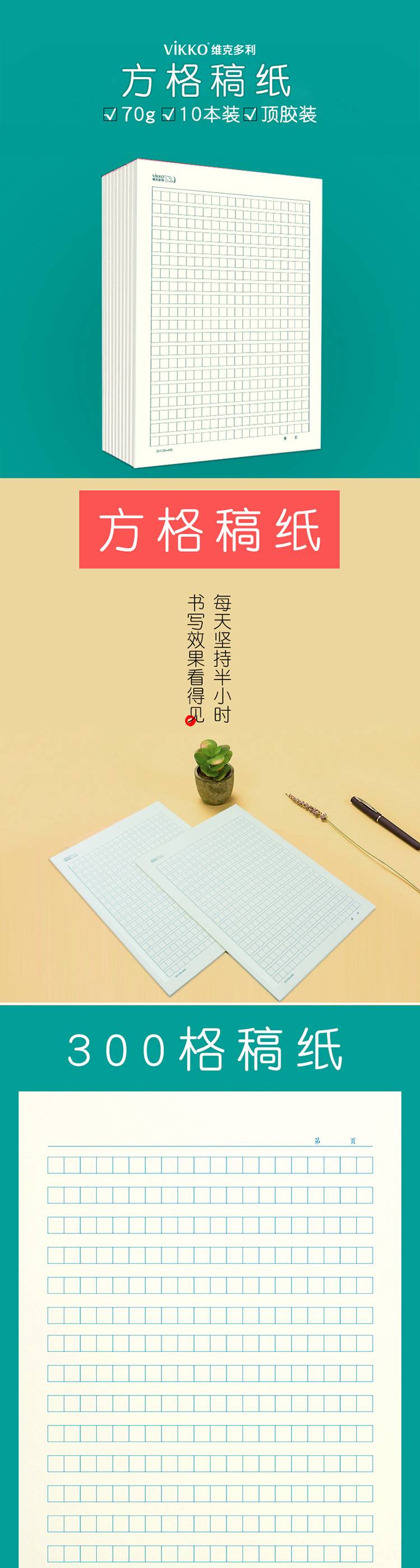 维克多利信纸本稿纸学生作文纸400格学生用方格信笺入党申请书信原稿纸情书信签文稿纸大学生考试专用格子纸