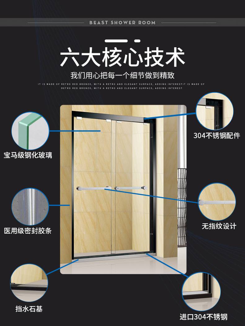 一字型304不锈钢淋浴房 酒店工程整体浴室玻璃门干湿分离