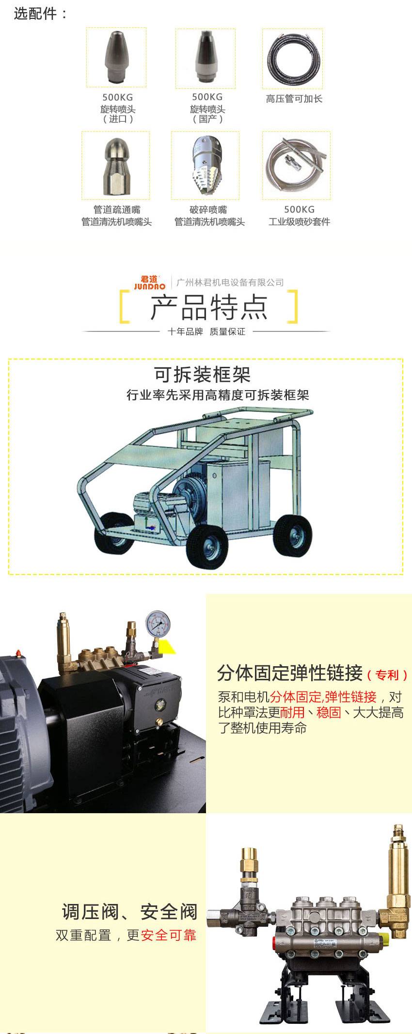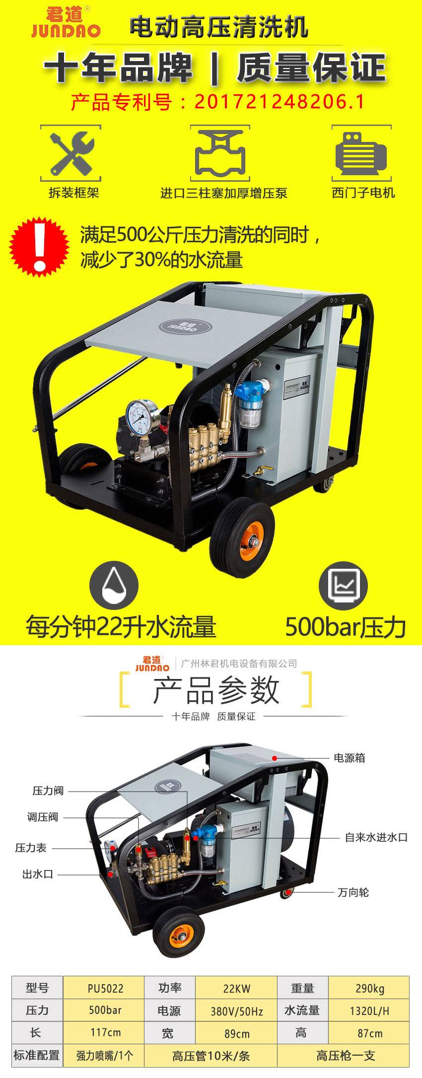 君道工业高压清洗机 2200W电动除锈水枪 6米射程